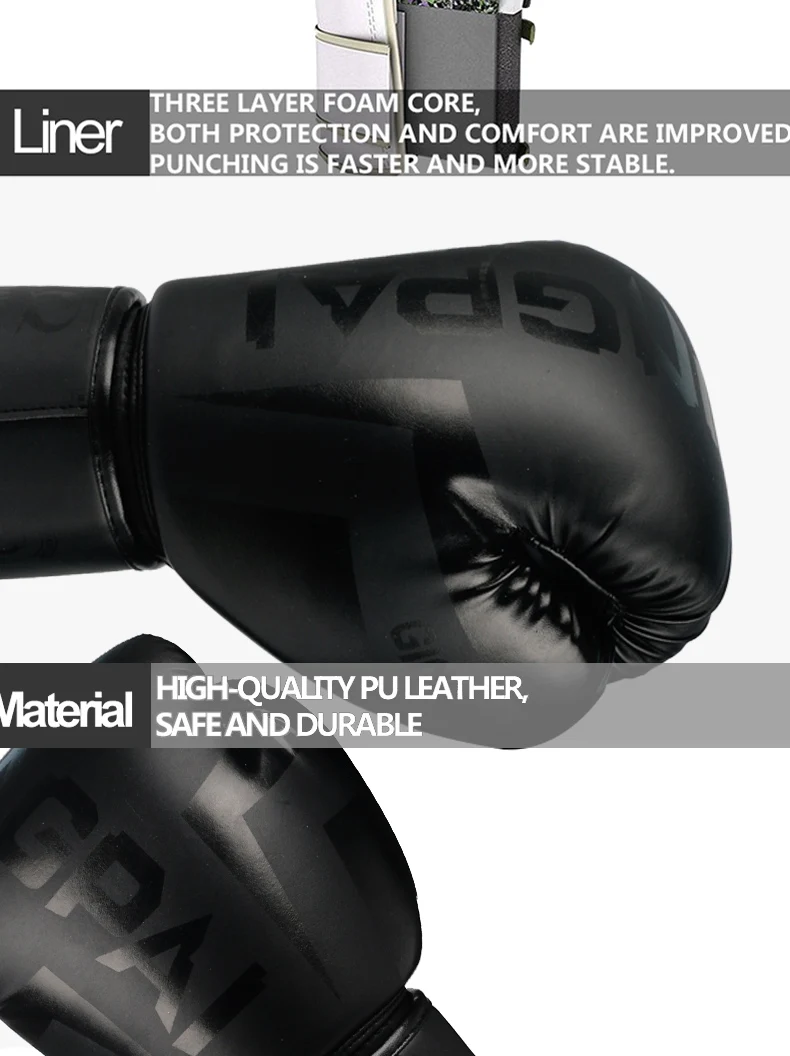 Хорошее качество черные взрослые кикбоксерские перчатки Муай Тай luva de boxe тренировочные бои для мужчин и женщин боксерские перчатки для грэпплинга ММА Guantes De Boxeo