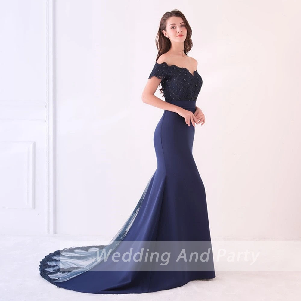 Женские вечерние платья, длинное платье-Русалка для свадебной вечеринки, Длинное Элегантное шифоновое кружевное официальное платье с открытыми плечами для выпускного вечера