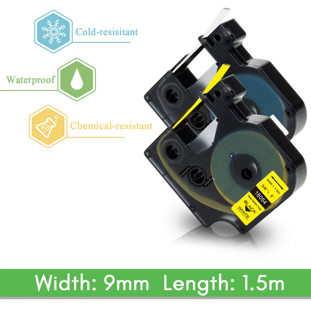Название продукта: 9 мм 18054 промышленный кассета для DYMO Rhino IND термоусадочная лента 18054 черный на желтый для DYMO Rhino 4200 5200 5000 принтер этикеток