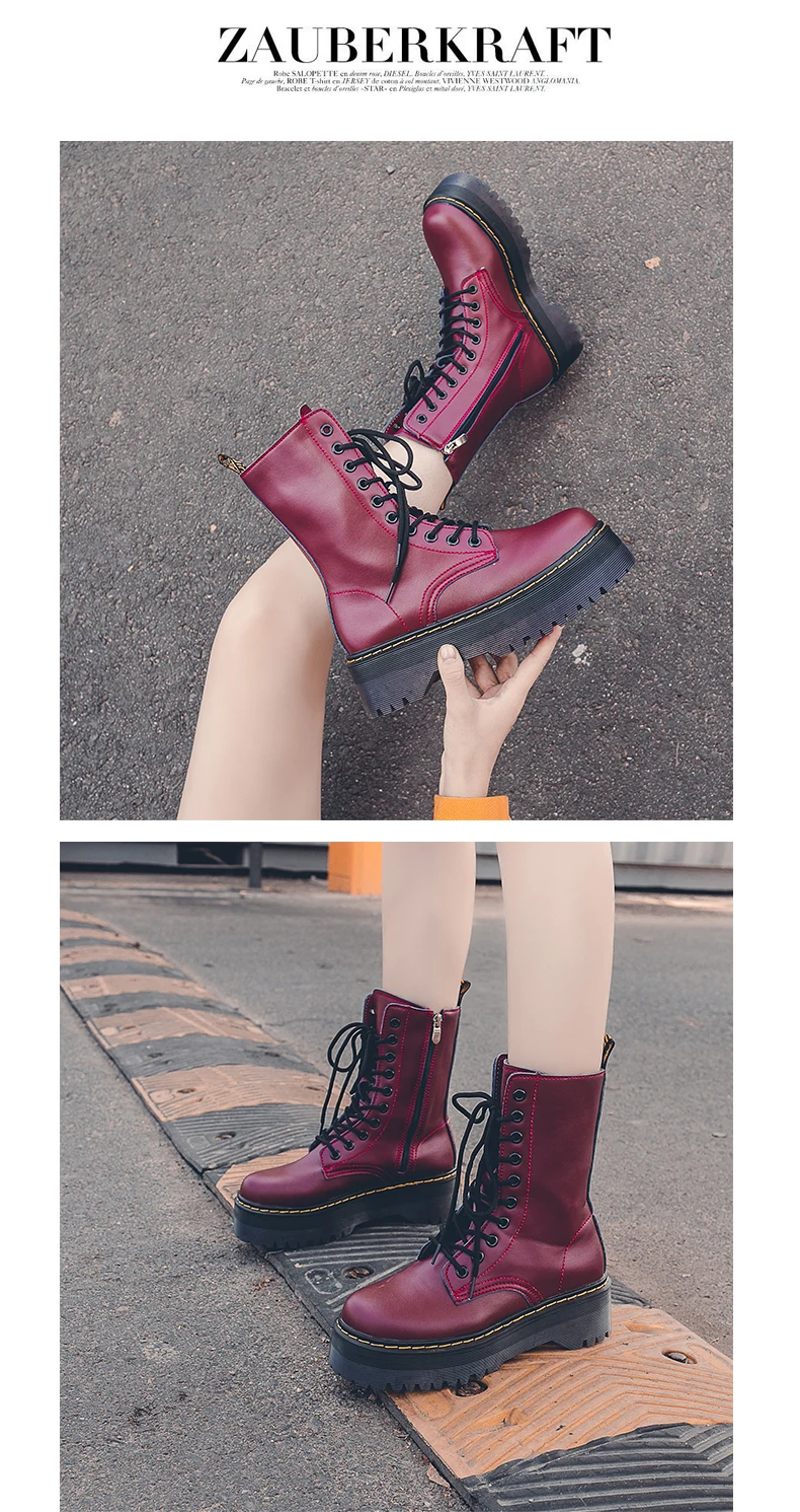 Женские мотоциклетные ботильоны из мягкой кожи на танкетке со шнуровкой и резиновой подошвой
