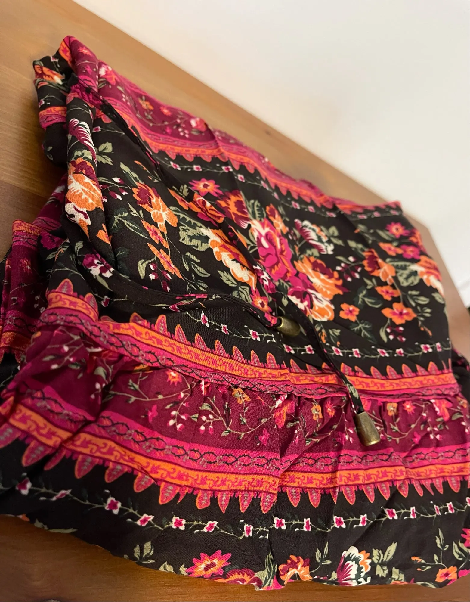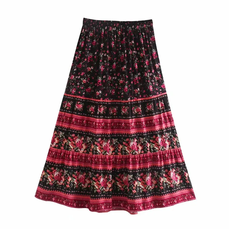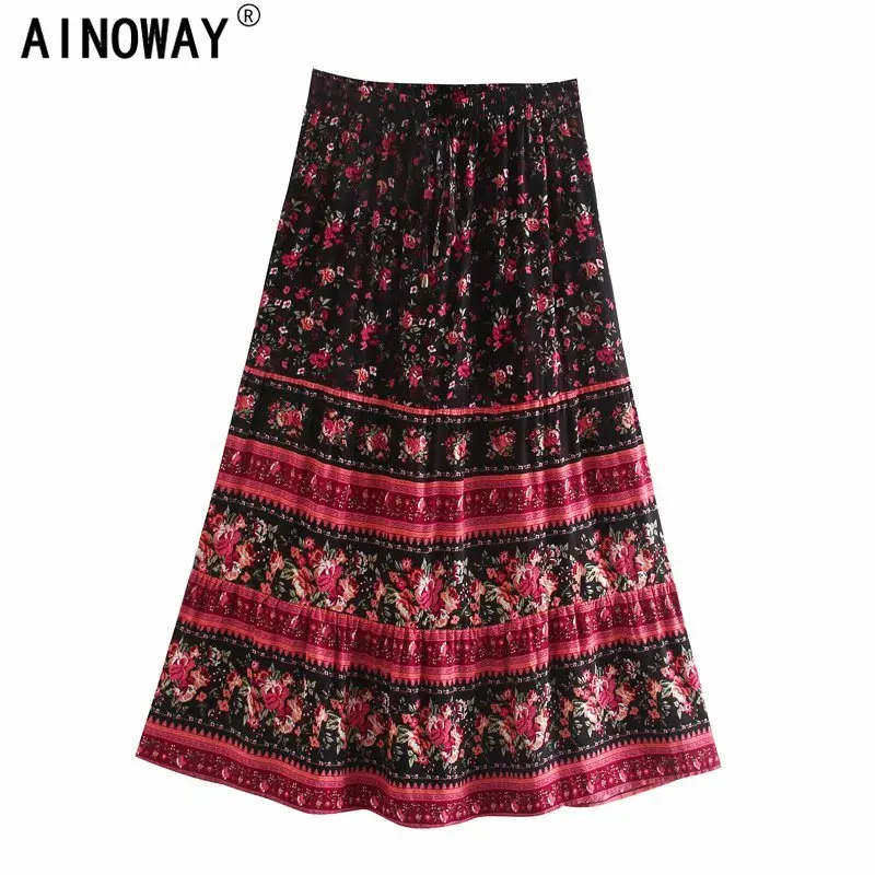 Женская юбка с цветочным принтом, этническая винтажная пляжная юбка в богемном стиле с высокой эластичной талией из вискозы и хлопка, макси-юбки в стиле бохо