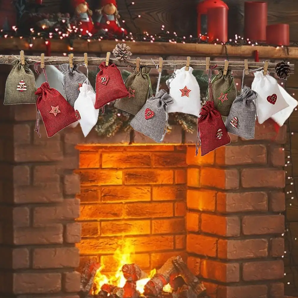 24 шт. Рождественский календарь обратного отсчета сумка подвесной, для конфет подарочные мешки мешок с зажимами наклейки веревка домашнего рождественского декора