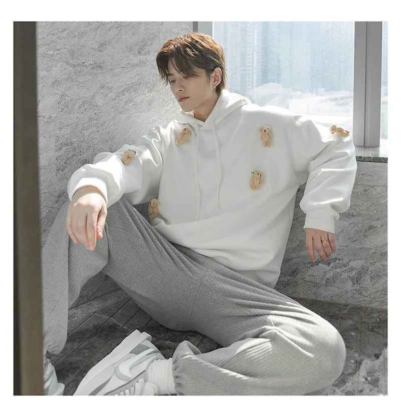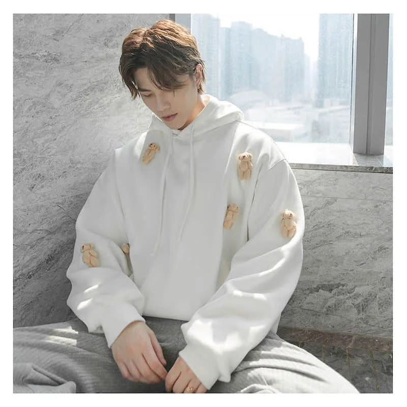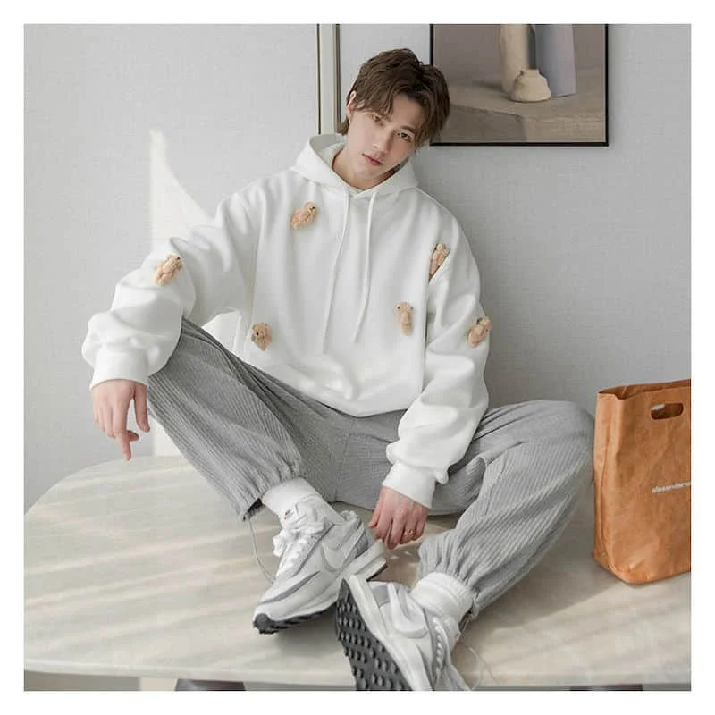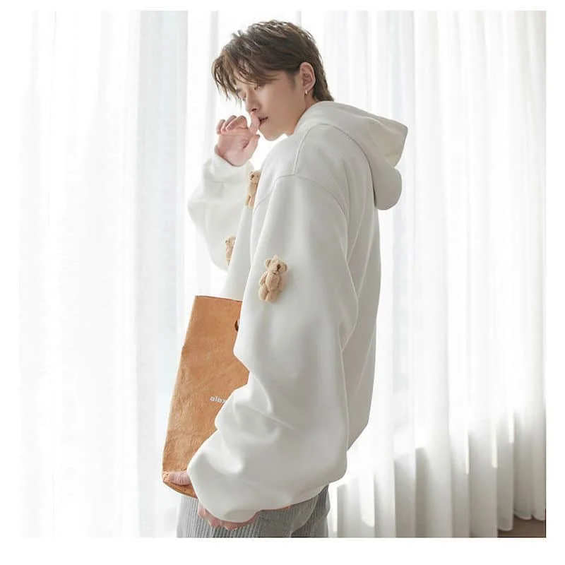 Толстовка мужская с капюшоном, Повседневная Свободная кофта с длинным рукавом, с трехмерным белым медведем, с мультяшным рисунком, домашняя одежда, осень