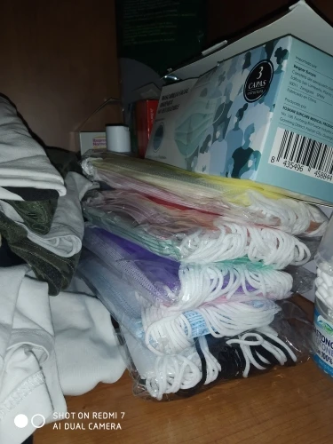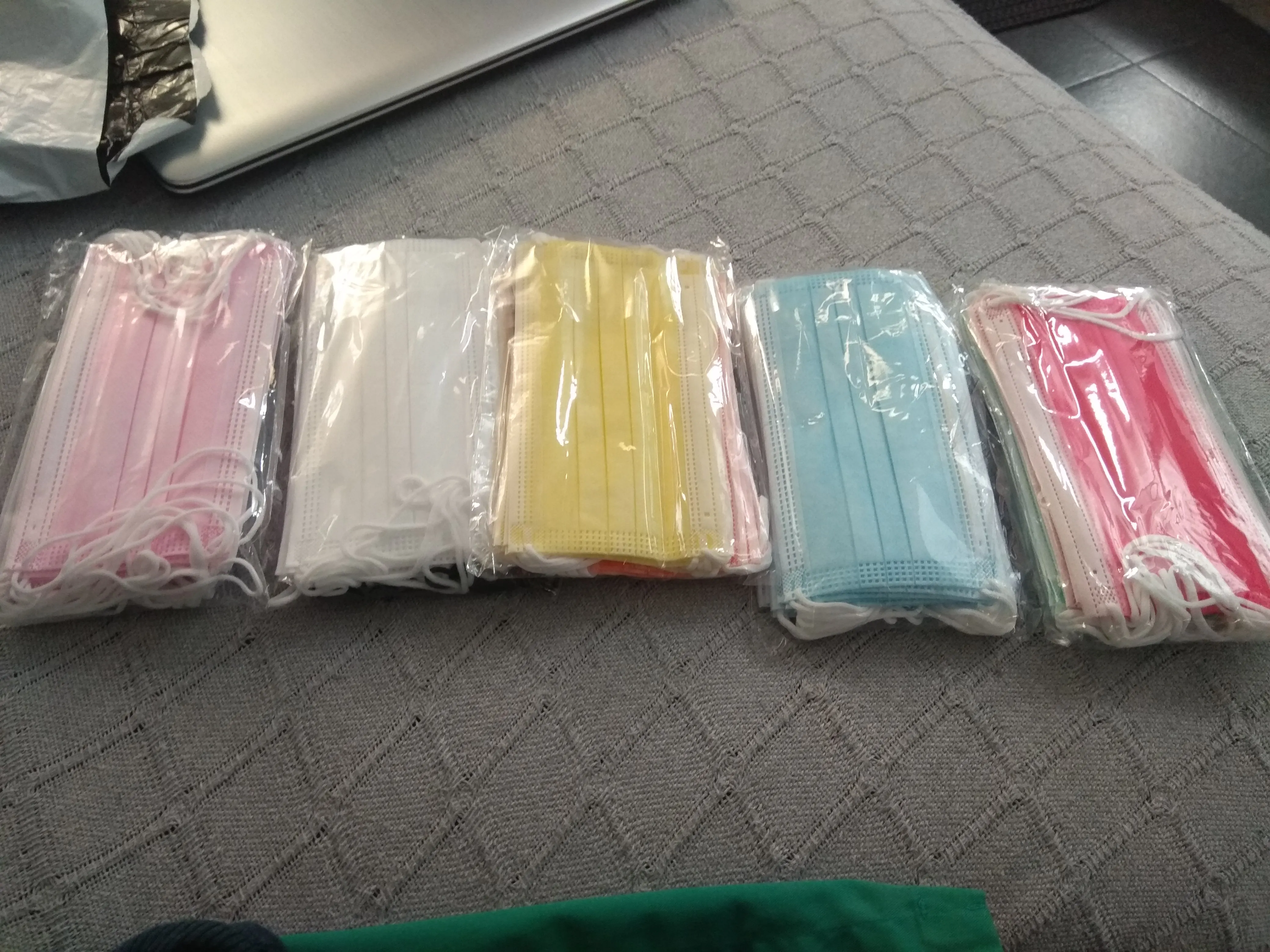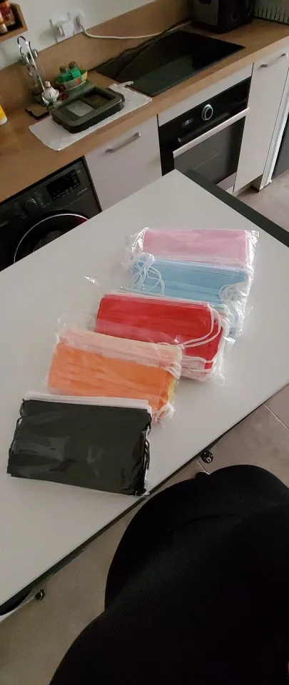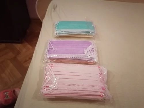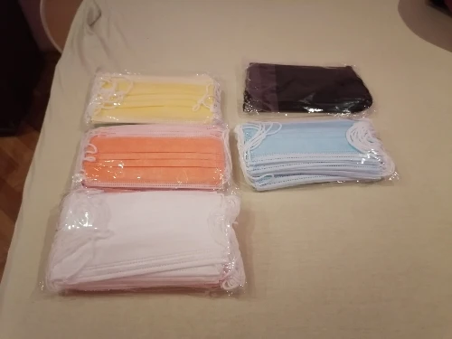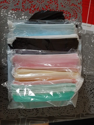 Маски хорошего качества, в меру плотные, резинки у белых, черных, голубых, розовых, сиреневых - в сечении круглые, у красных, зелёных, жёлтых и оранжевых - плоские, крепление на первый взгляд надёжное. Дышится в них комфортно, запаха не имеют. проволока на переносице форму держит. Заказывала 100 шт разных цветов, упакованы в 5 прозрачных пакетов по 20 шт (2 разных цвета по 10, голубые - 20) и в почтовый пакет. Доставка в Пермь за 18 дней, посылка трекалась на всём пути. К покупке рекомендую!