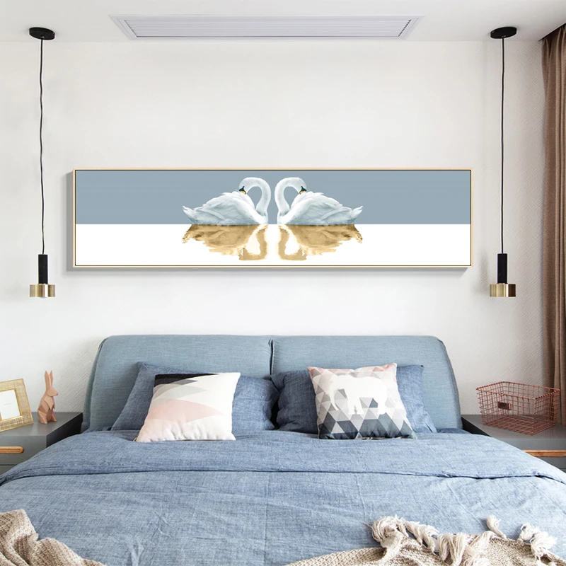 Современный абстрактный настенный постер на холсте, синее золото, перо, Белый лебедь, лес, принт, картина в скандинавском стиле, домашний декор для спальни