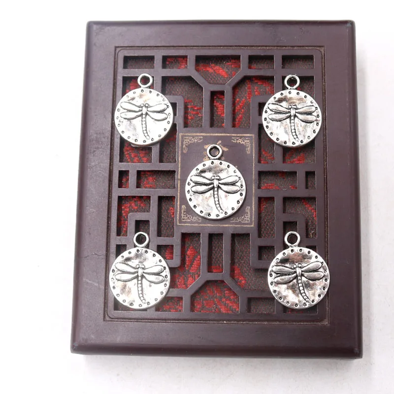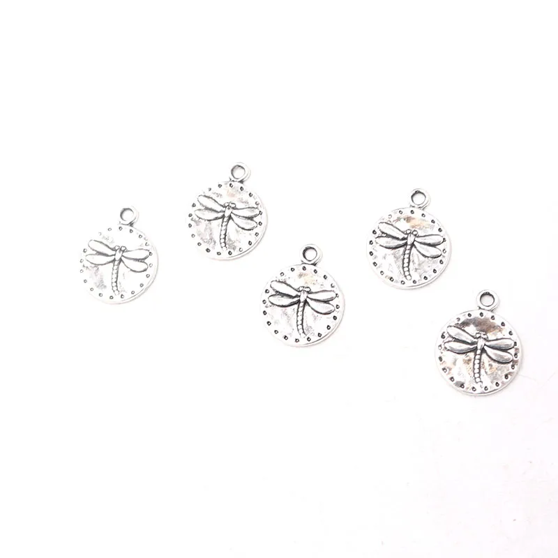 20 шт.лот Посеребренная стрекоза, круглая бирка, очаровательные металлические подвески сделай сам, ожерелья, браслеты, ювелирные изделия, аксессуары ручной работы 19*15 мм