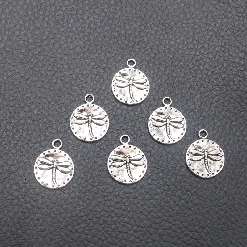 20 шт./лот Посеребренная Стрекоза круглая бирка очаровательные металлические подвески DIY ожерелья браслеты ювелирные изделия Аксессуары для рукоделия 19*15 мм