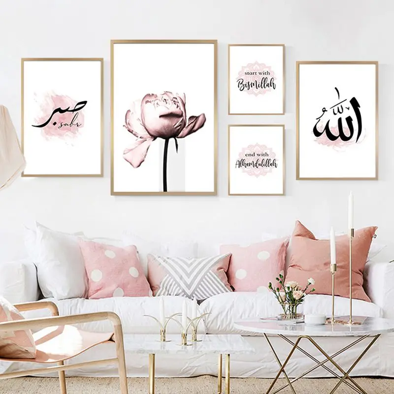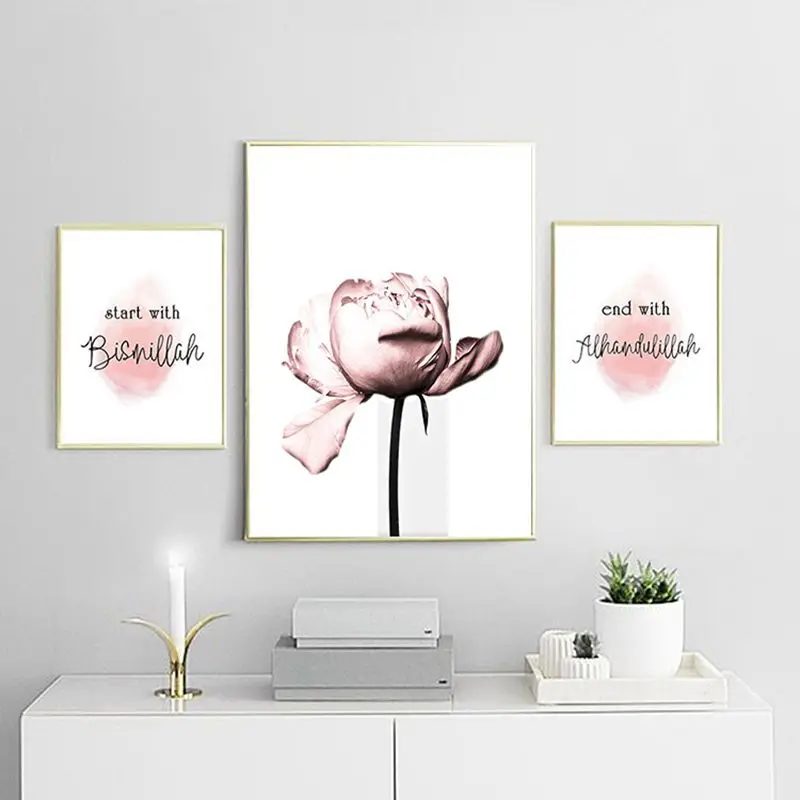 Аллах мусульманство ислам Картина на холсте, Постер с арабскими пионами, печать картин для гостиной, начиная с конца бисмиллы с алхамдуллилом