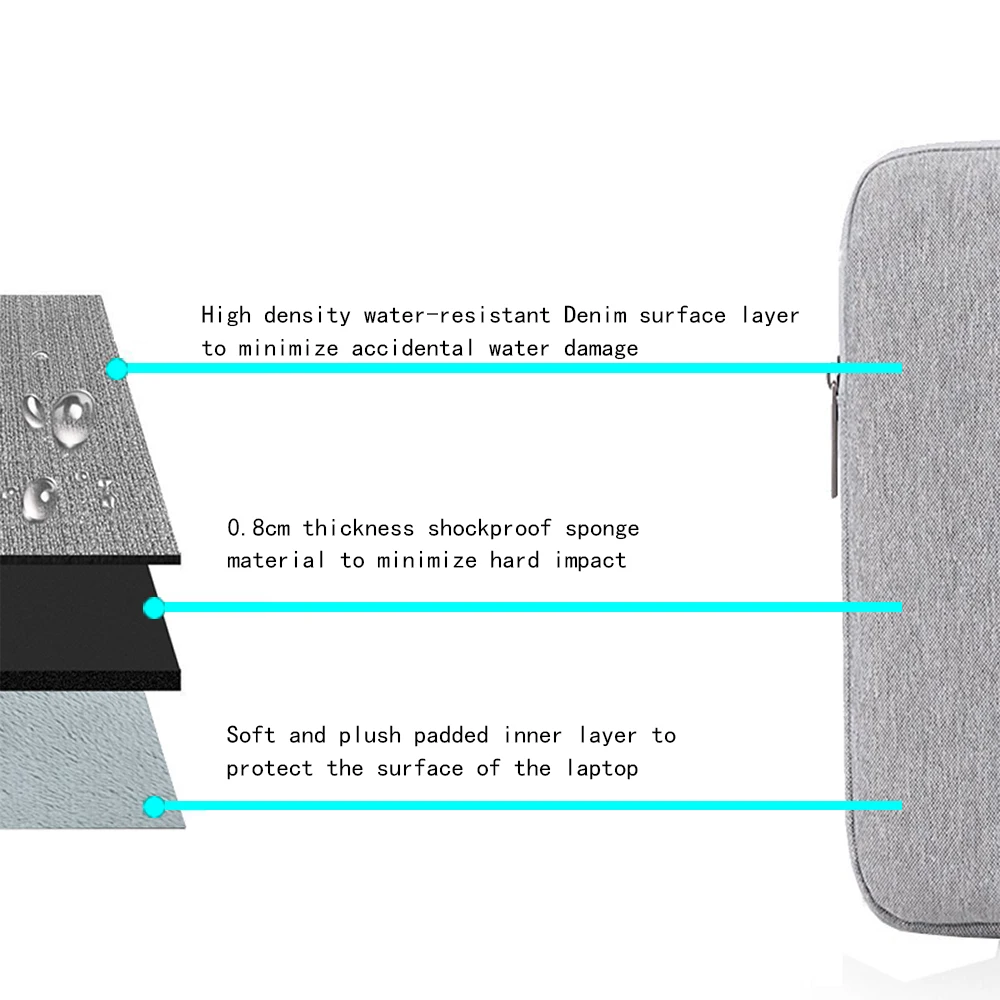 -Изготовлен из высококачественного водонепроницаемого нейлона и мягкой пушистой фланелевой подкладки, позволяет защитить чехол для ноутбука от ударов, внезапных падений, царапин, пыли, масла и т. д.