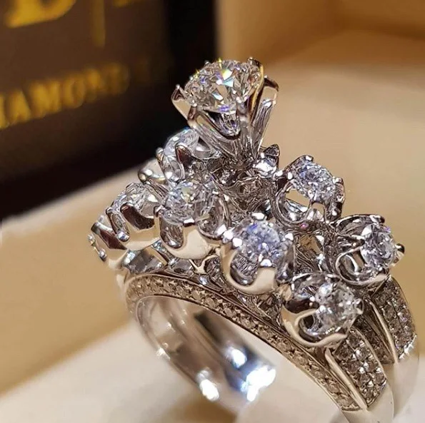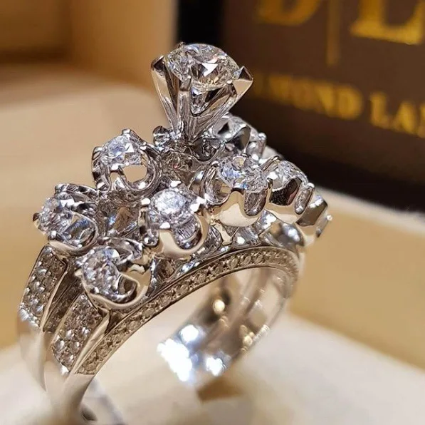 Набор роскошных изысканных свадебных колец с белым Цирконом для жен...