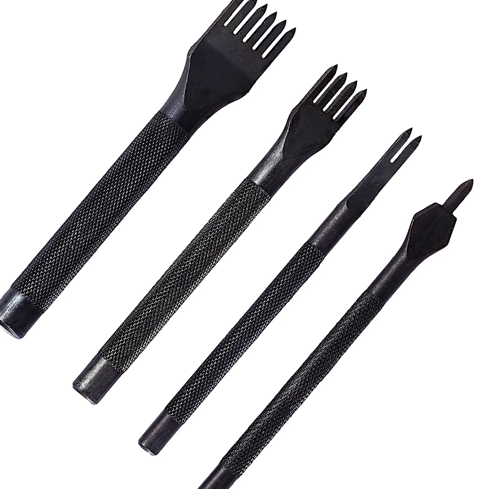 LMDZ 4 шт 1 + 2 + 4 + 6 зубец Кожа ремесло Инструменты дырокол для шнуровки для сшивания рабочее долото ручной работы шитье кожаный инструмент 4 мм