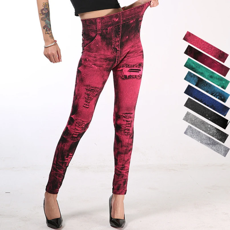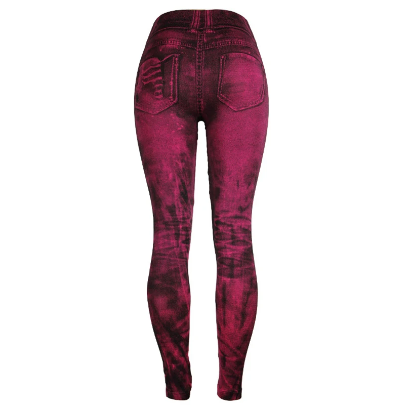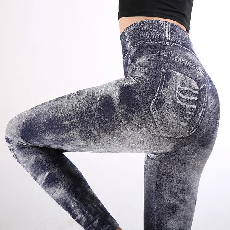 Искусственная лосины из джинсовой ткани 2020 женские леггинсы для спортзала Леггинсы с карманом с принтом повседневные узкие брюки с высокой талией плюс брюки