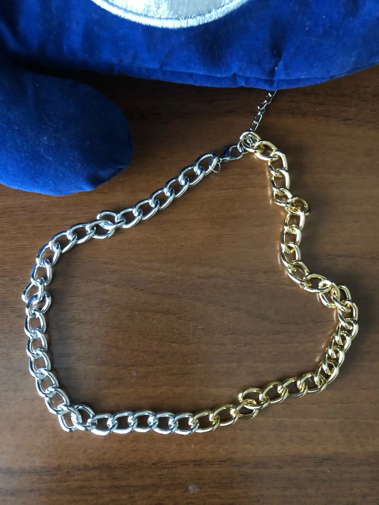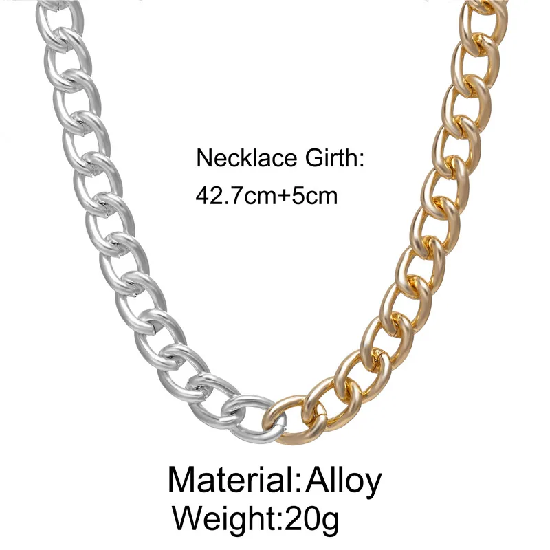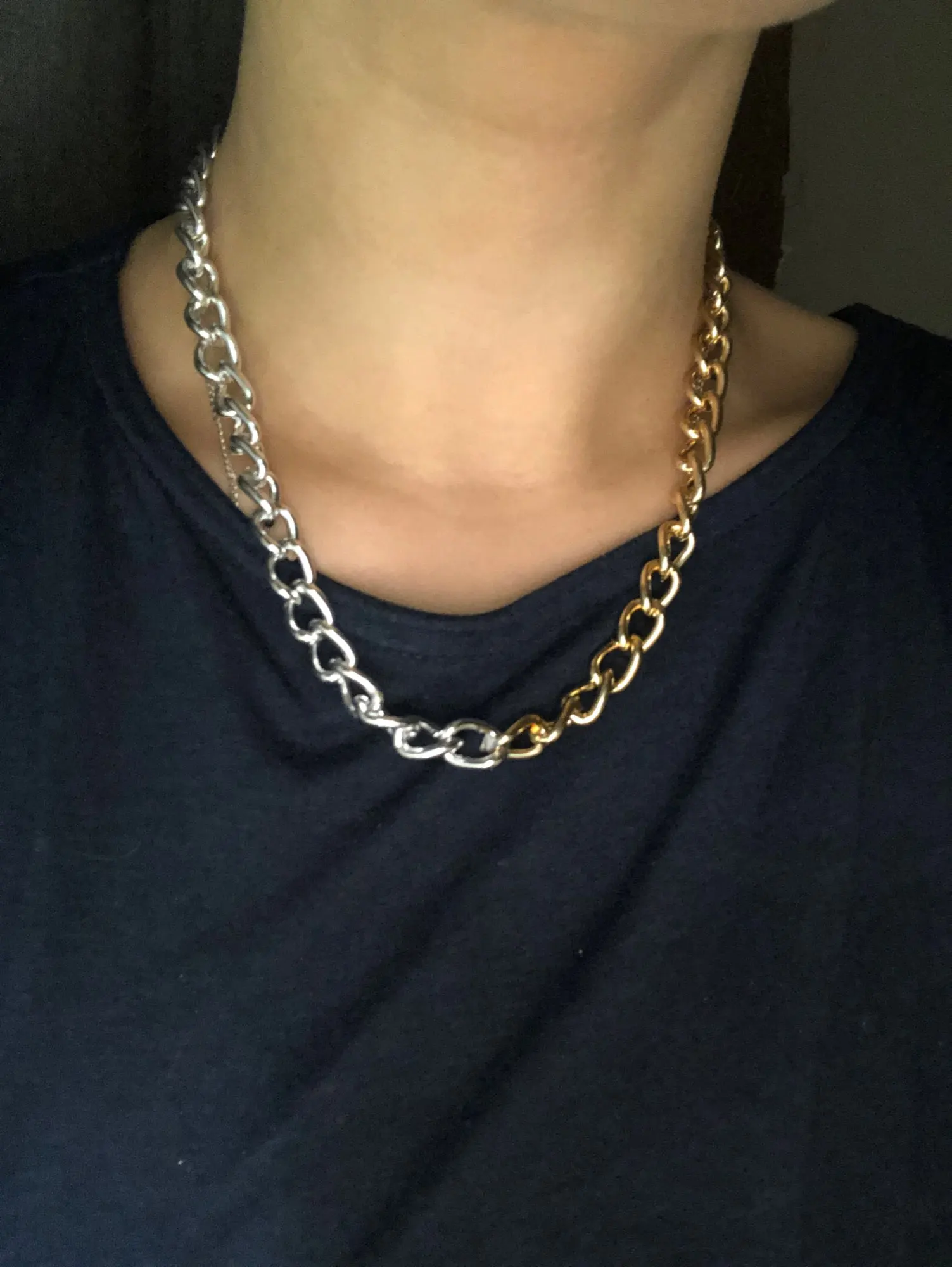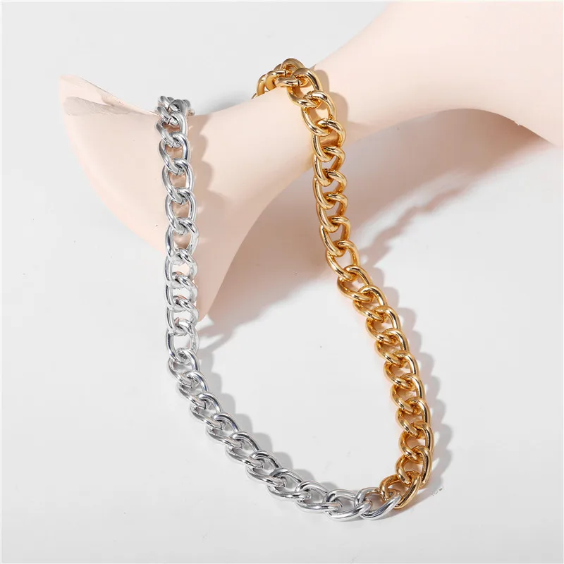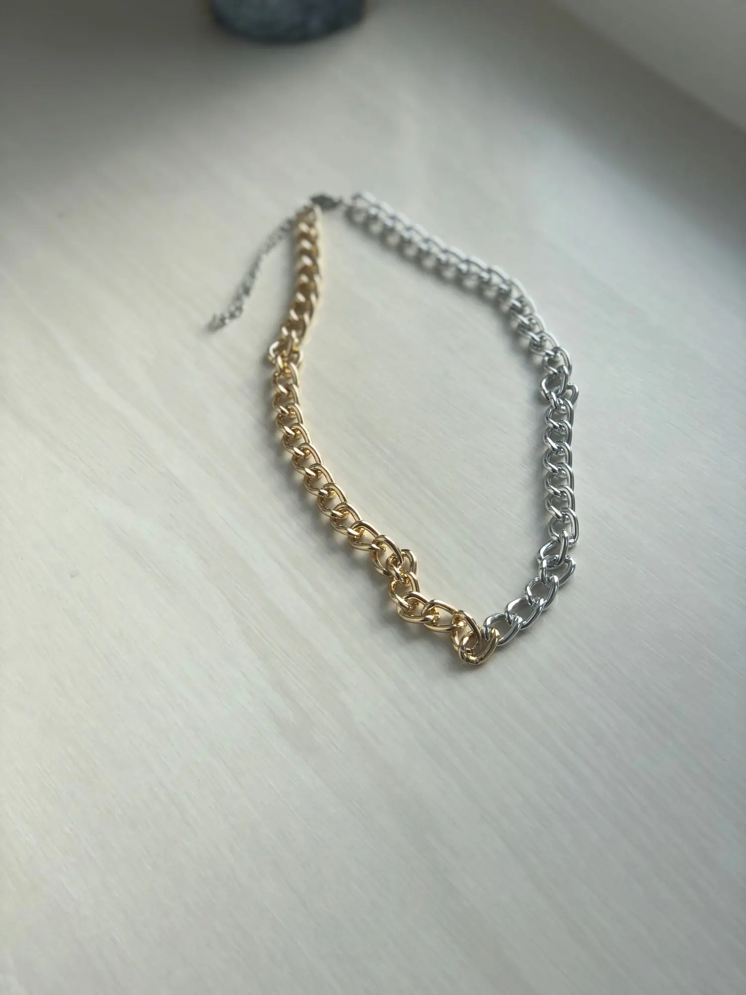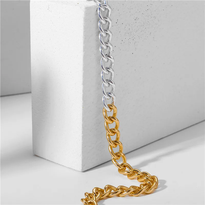 Ожерелье-чокер женское, толстая цепочка, золотого и серебряного цвета, 17 км, асимметричная цепь