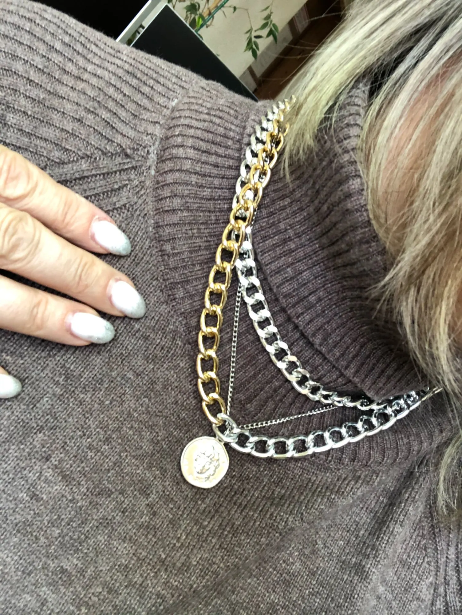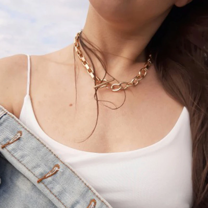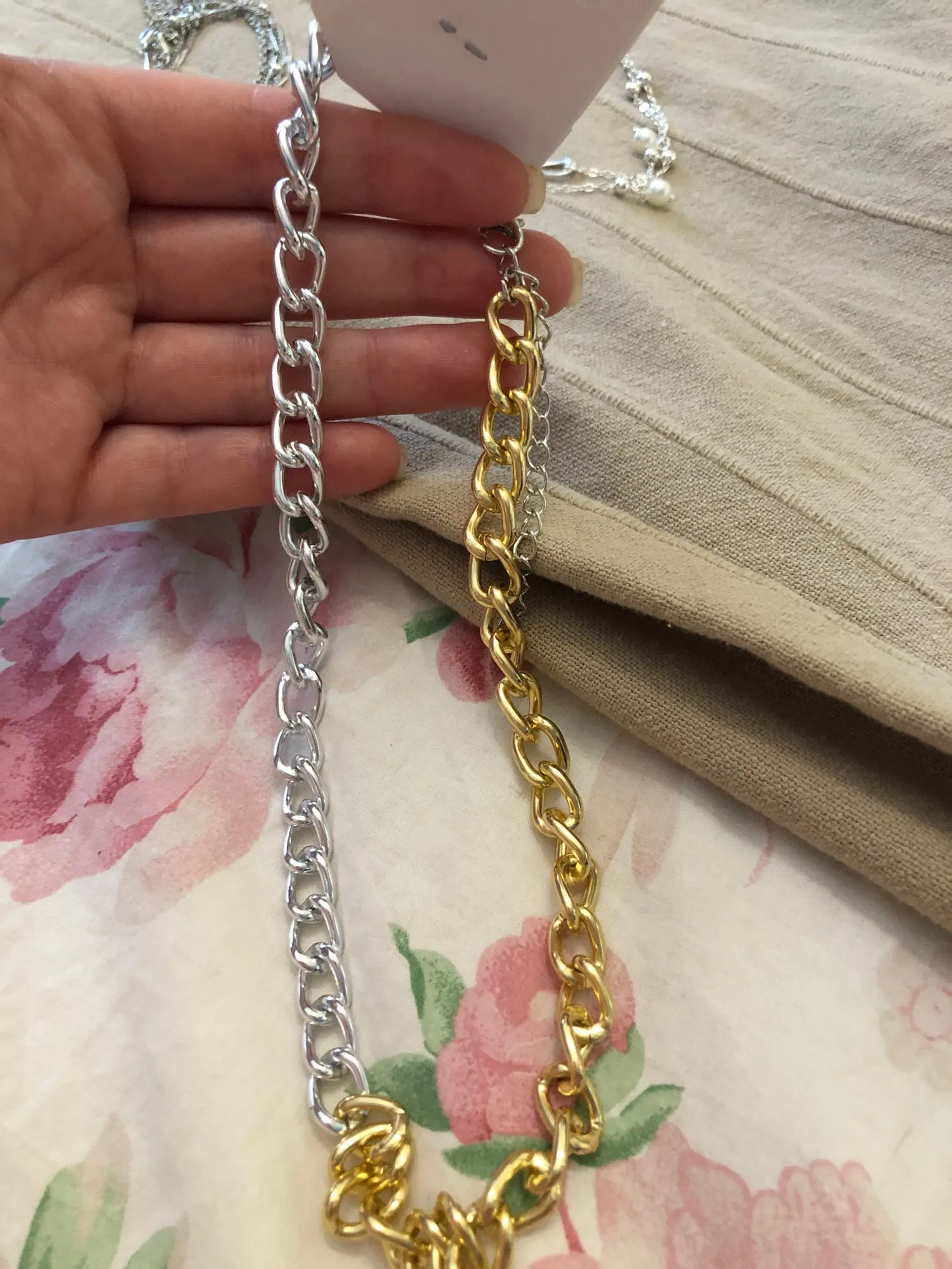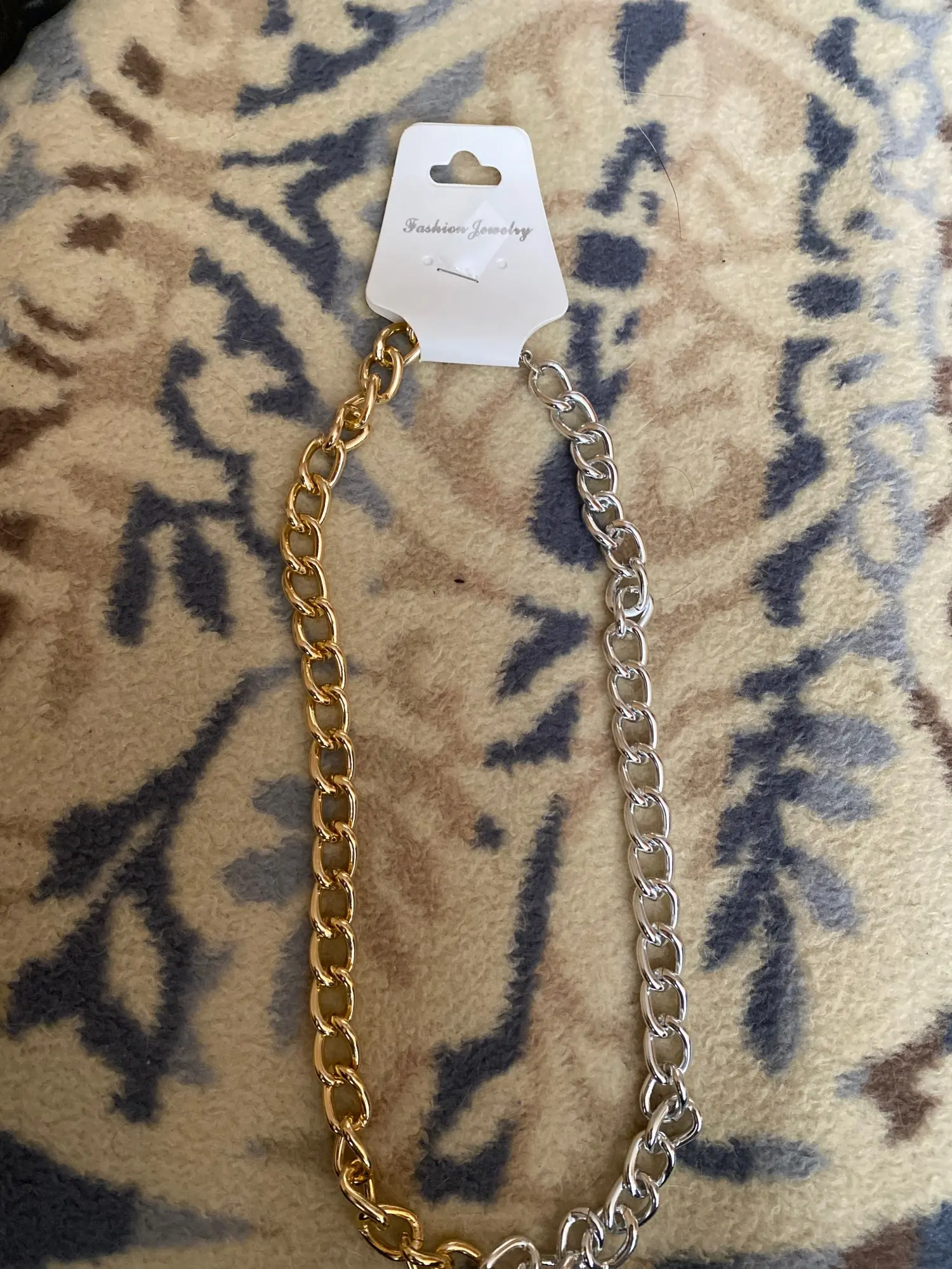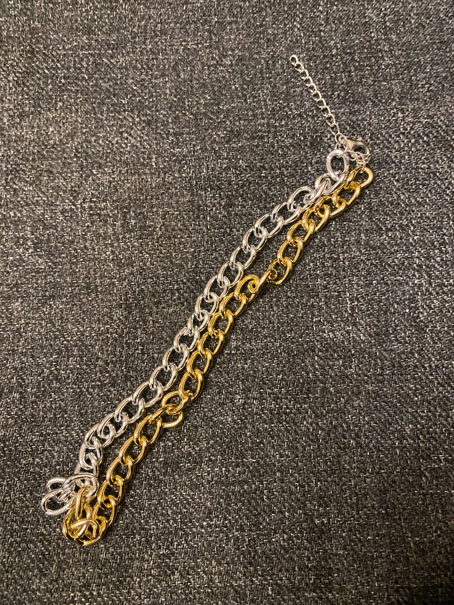 Ожерелье-чокер женское, толстая цепочка, золотого и серебряного цвета, 17 км, асимметричная цепь