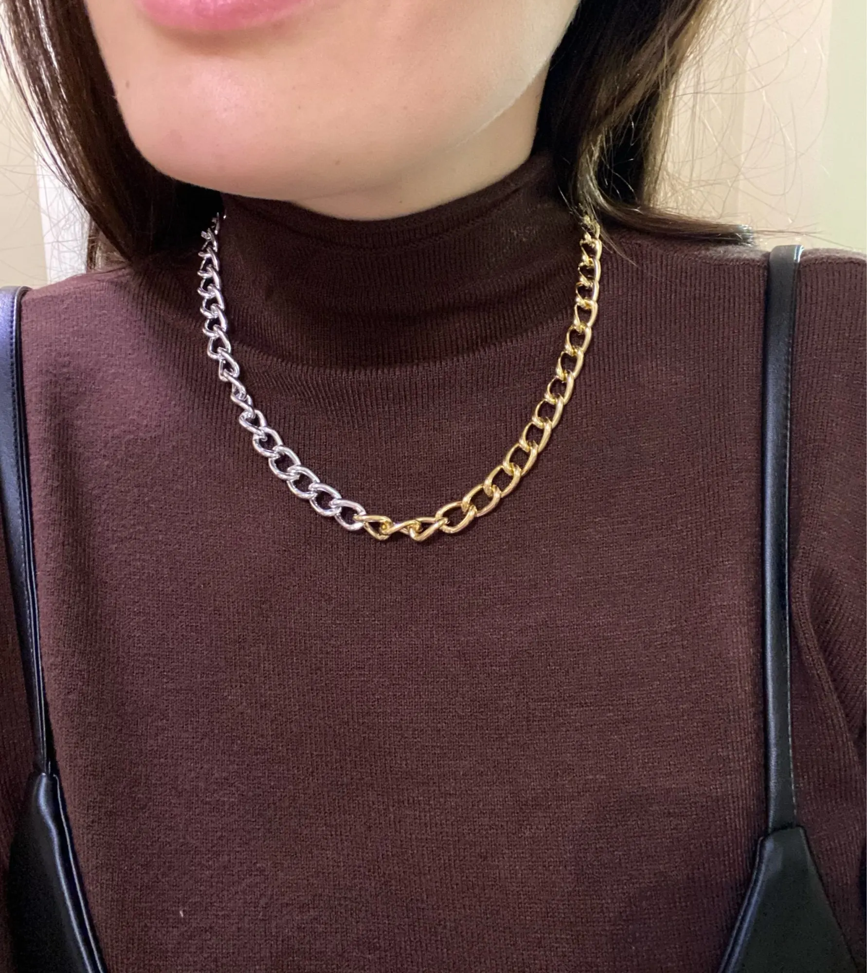 Крайне редко снижаю звёзды, но... это не соответствует фотографии !!! На фото цепь в 2-3 раз шире, мощнее, стильная! А по факту... ну да, двухцветная..но никакого стильного образа она не создаст, возможно получится спасти ее , дополнив своими други подвесками, в одиночку она совсем дёшево смотрится! Если бы продавец сделал цепочку такой как на фото, цены бы не было!!! Было бы круто, но увы, рекомендовать не могу