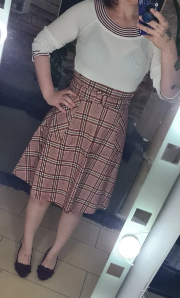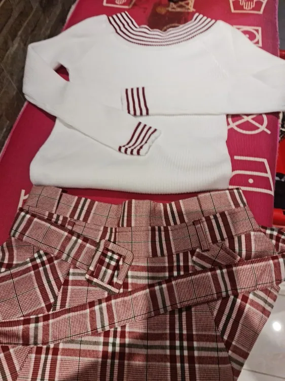 Мне нравится этот наряд! Юбка из твердого материала, но сшита аккуратно, а пояс восхитительный. Свитер может быть плотно облегающим для крупных дам, поэтому я рекомендую заказать на размер больше. Но свитер также невероятно мягкий, эластичный и очень удобный! Не общался с продавцом... Нет необходимости в том, что все идеально: Безусловно, повторите!