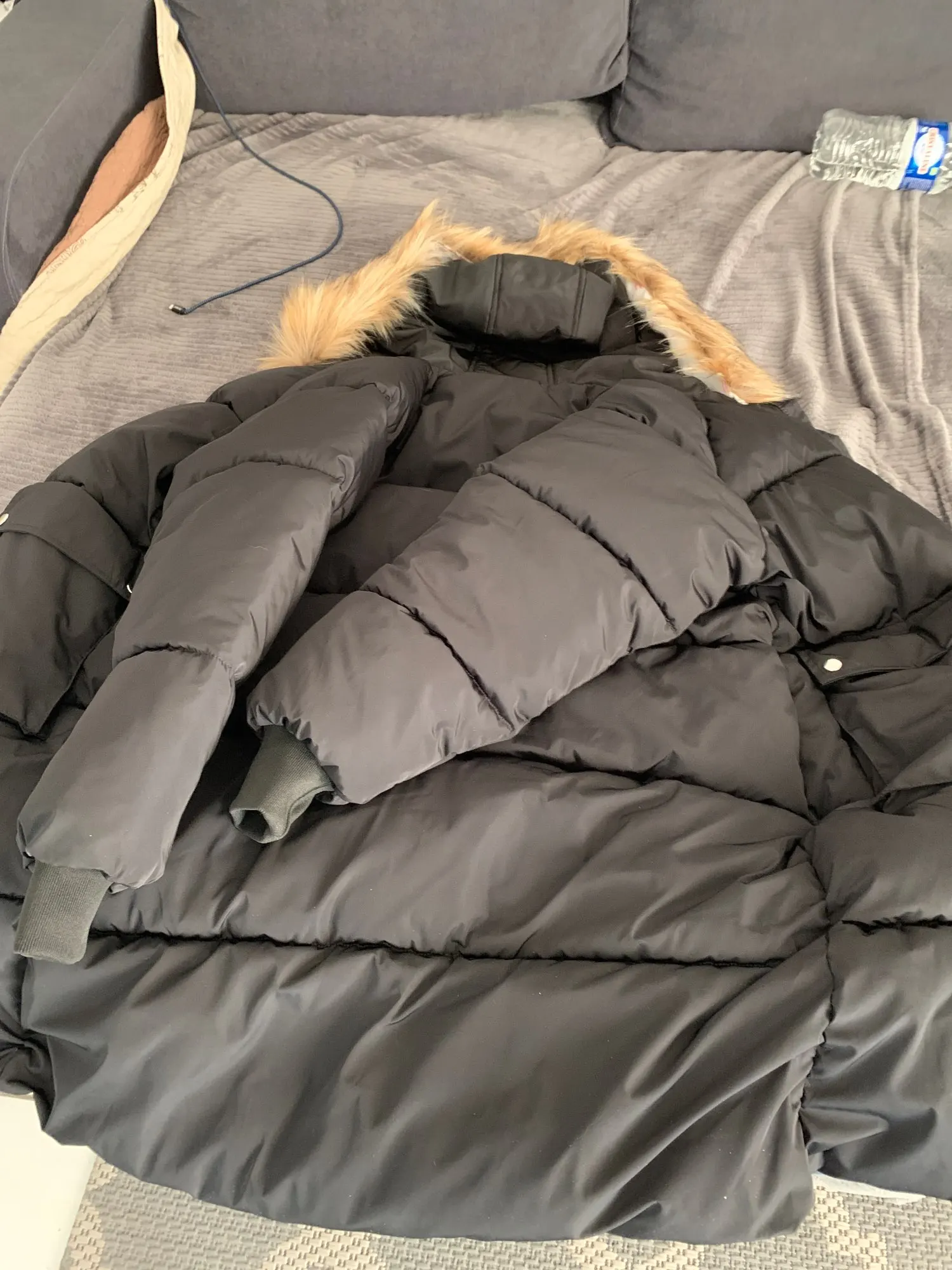 Женский длинный пуховик с капюшоном, на хлопковом наполнителе