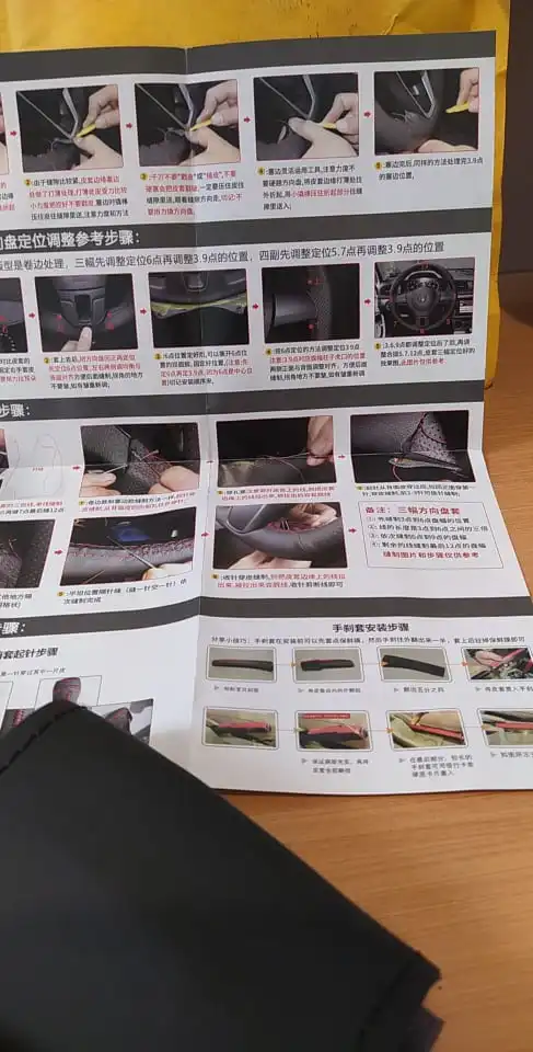 Сшитая вручную кожа черного цвета чехол рулевого колеса автомобиля ...