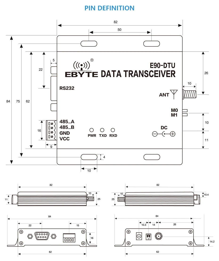 SX1268 Lora433Mhz 30dBm 10 км Диапазон 0,3 k 62,5 кбитс E90-DTU(400SL30) RS232 RS485 Беспроводной Lora модем