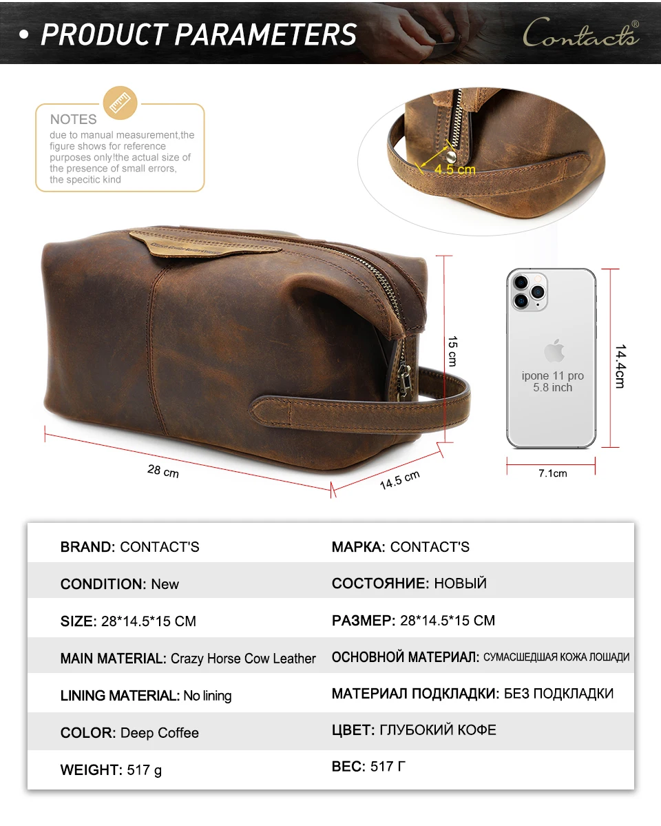 Мужская висячая косметичка CONTACT'S из кожи Крейзи Хорс, дорожный кейс для косметики на молнии, винтажный органайзер для хранения туалетных принадлежностей