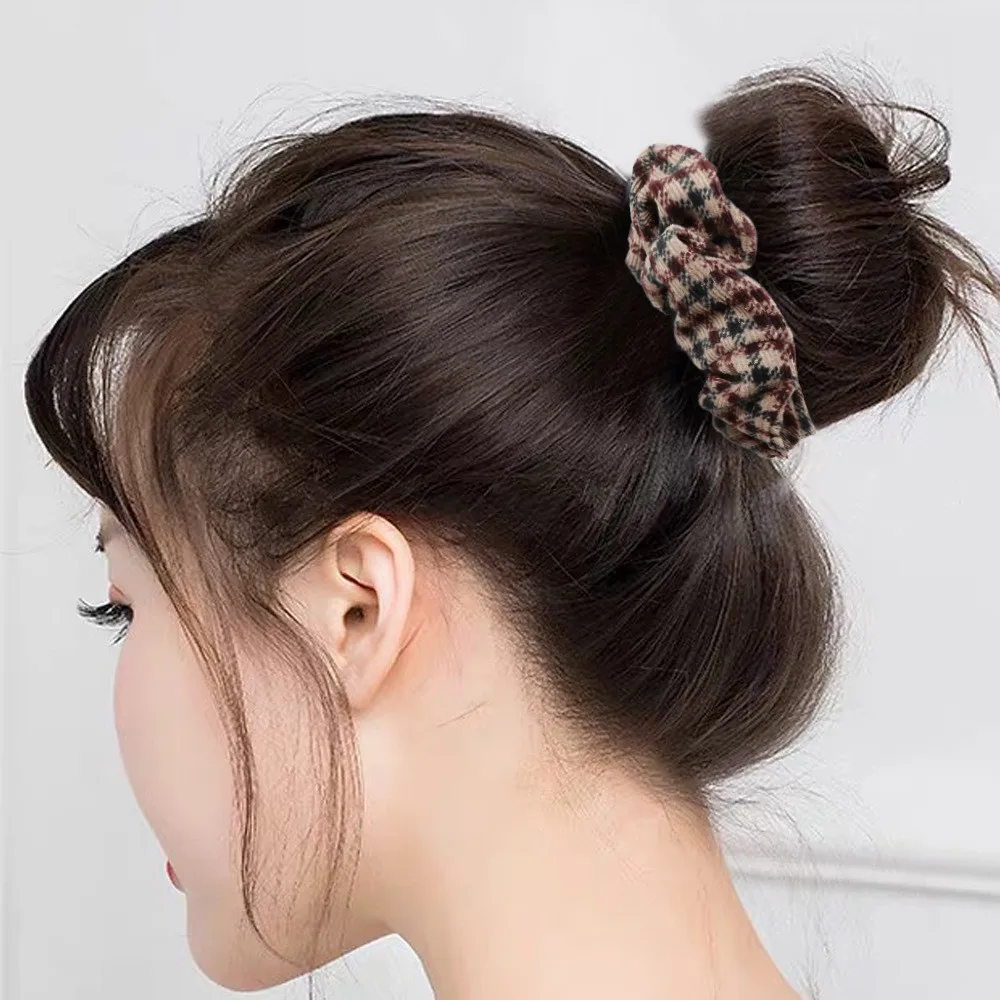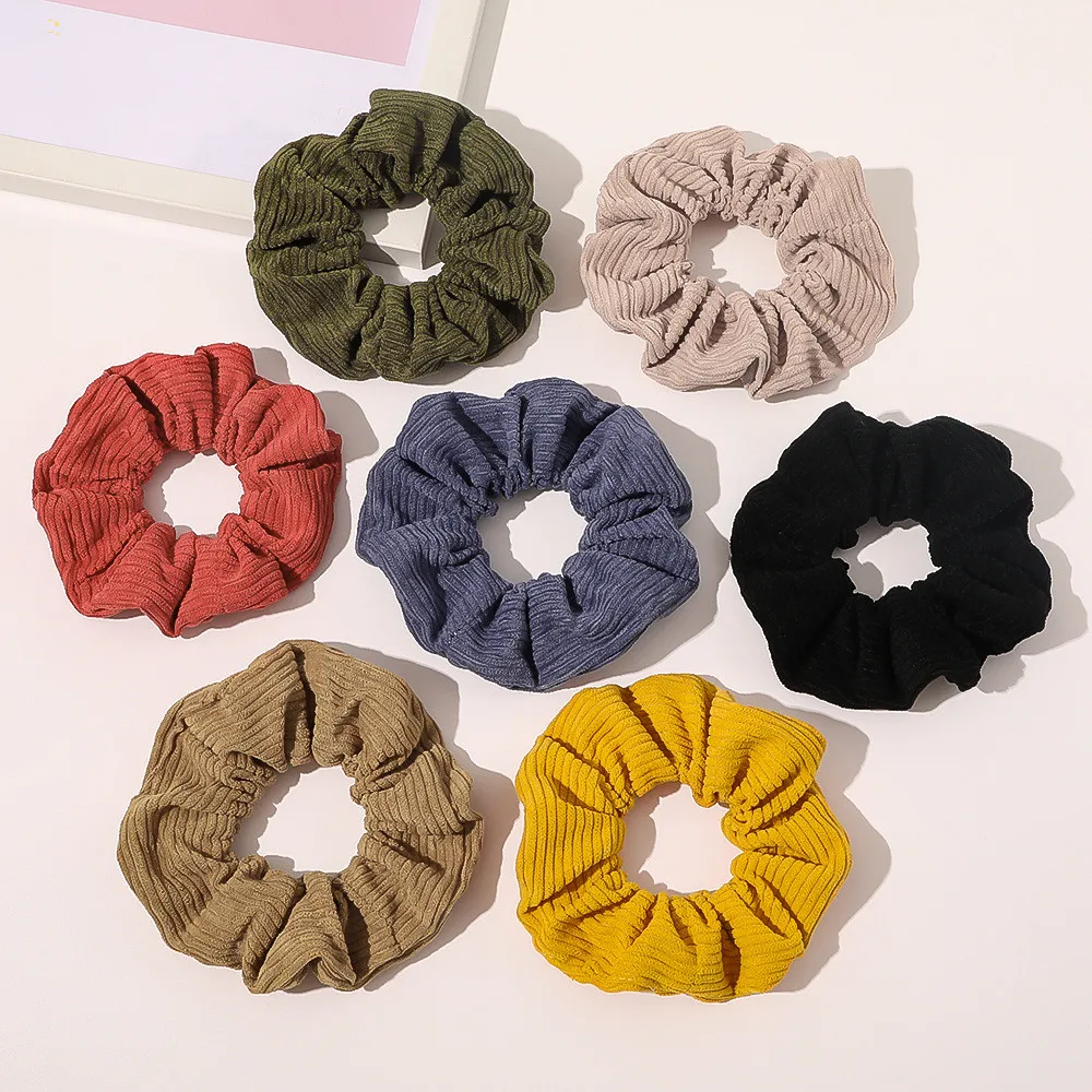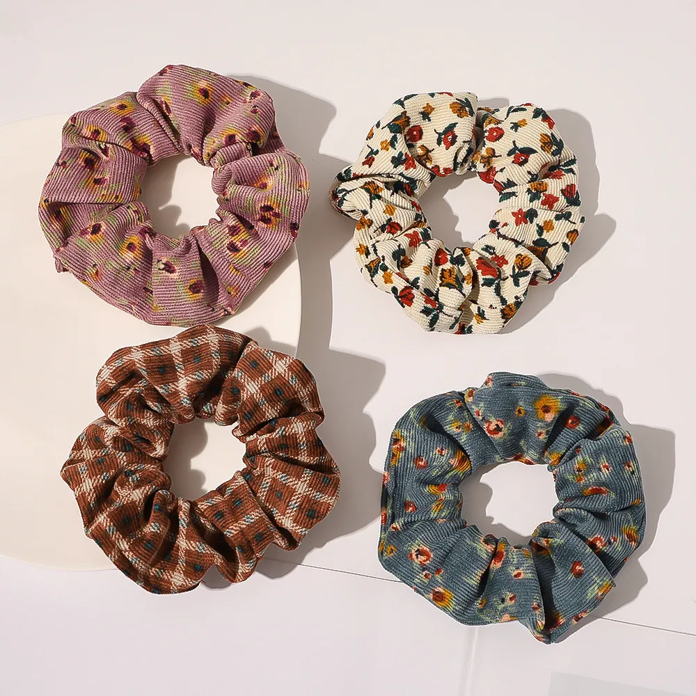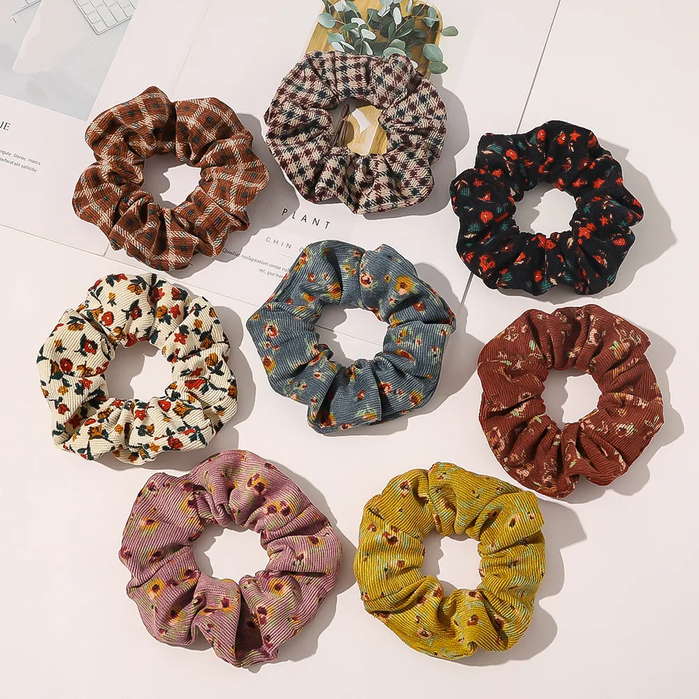 Цветочные полосатые резинки для волос, женские клетчатые эластичные резинки для волос, вельветовые резинки для волос, ободок для конского хвоста, зимние аксессуары для волос