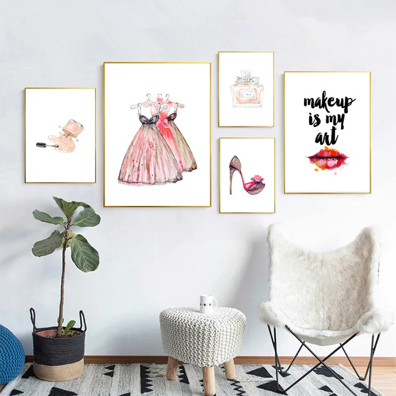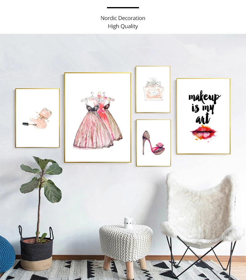 Современные розовые цветочные парфюмерные модные плакаты с принтом ...