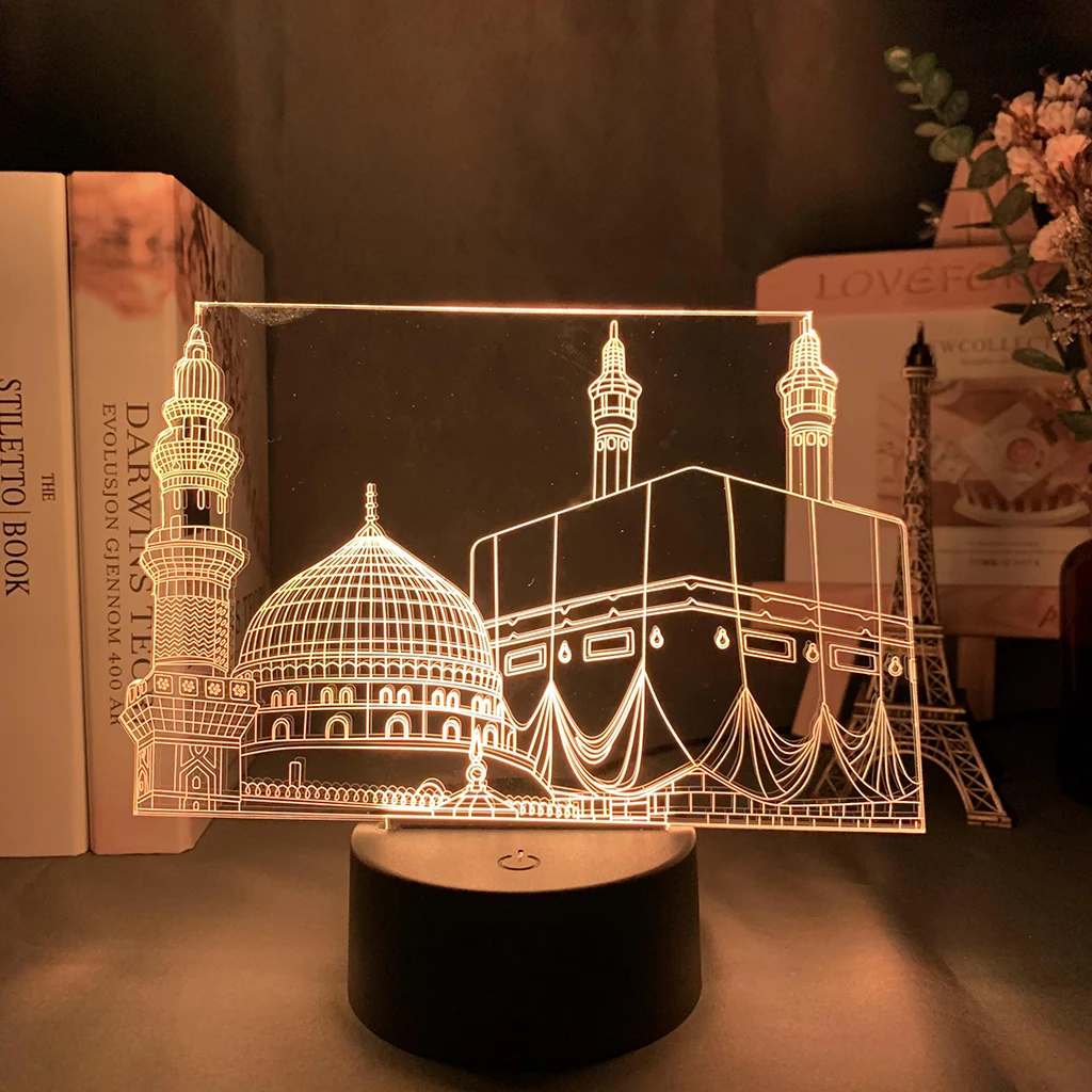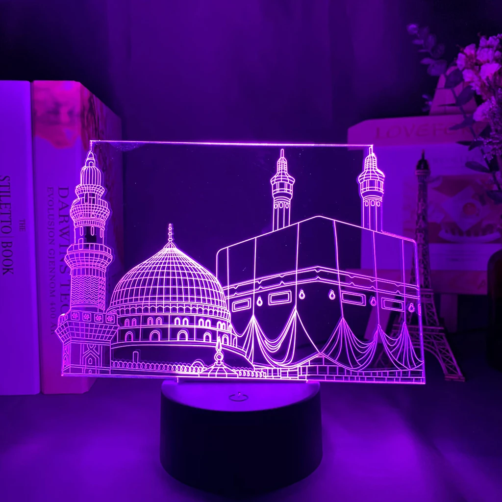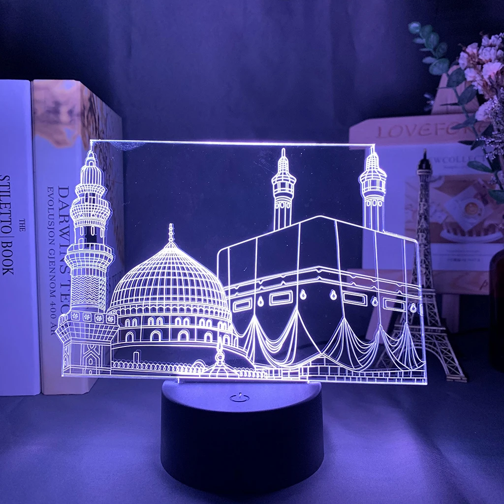 3D ночник в мусульманской мечети для домашнего декора, Ночной светильник с Кораном, меняющий цвет, акриловый светодиодный ночник с изменяющими цвета, крутой подарок Рамадан