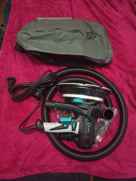 Доставка 2 дня.Немного пылит,основная часть пыли выходит через соединение шланга(устранимо)Большая часть пыли уходит в мешок или вывяливается из машинки.Шкурил декоративную штукатурку,всё гуд чистит на ура.Работал на максимальных оборотах,так веселее!Светодиод порадовал,отлично светит.