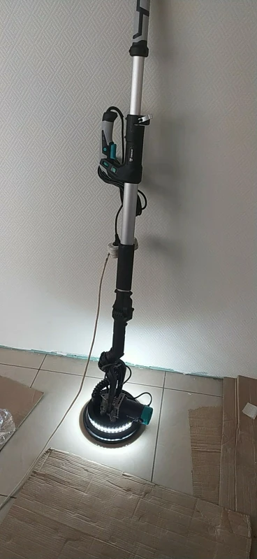 Приехала быстро. Домой курьером. На вид сделана качественно. Пластик прочный, алюминий толстый. Подсветка яркая. Провод длинный. Как назло проверить негде, с подходящей моляркой нет объекта. Единственное самнение вызывает защитный кожух, в нем куча всяких технических отверстий. Пыль вряд ли полетит, но про вакуум речь не идёт! В комплекте 6 шкурок по 2 разного зерна. Всё Супер! Хороших вам продаж! Спасибо! Испытаю, дополню.