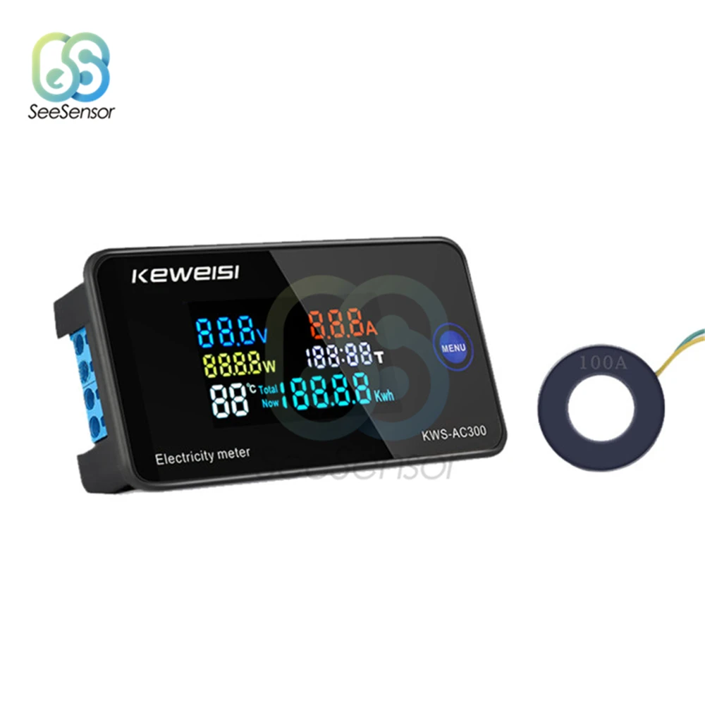 Вольтметр переменного тока, 50-300 В, 100 А, 10 А, амперметр, ваттметр, измеритель мощности, светодиодный цифровой измеритель напряжения, тока, емкости, Электрический измеритель