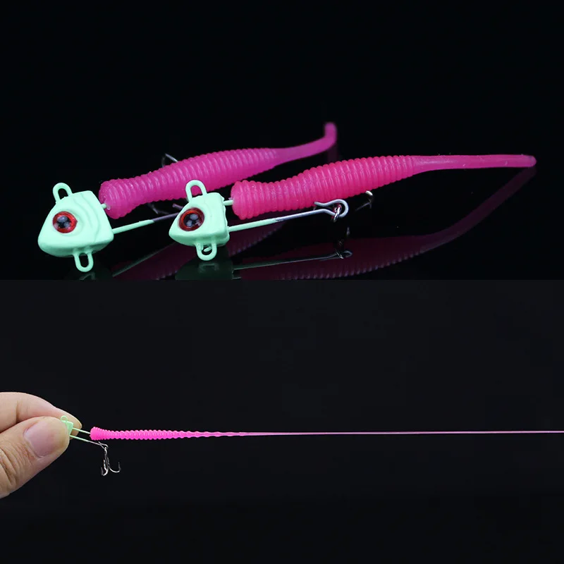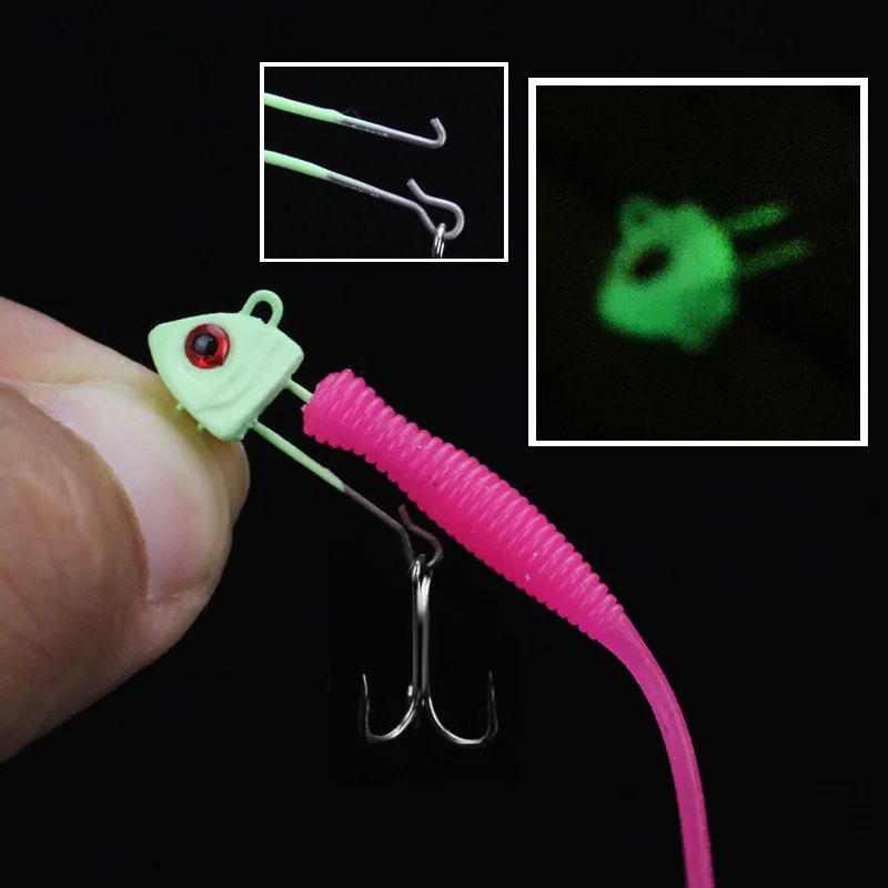 Мини свинцовый крючок с бородкой и головкой, с мягкой приманкой, светящийся, 10000 г, 2,2 г, рыболовные крючки для ловли карпа, рыболовная снасть для червя