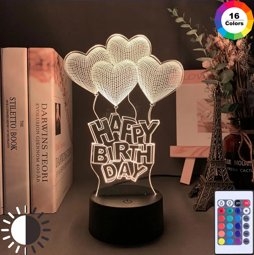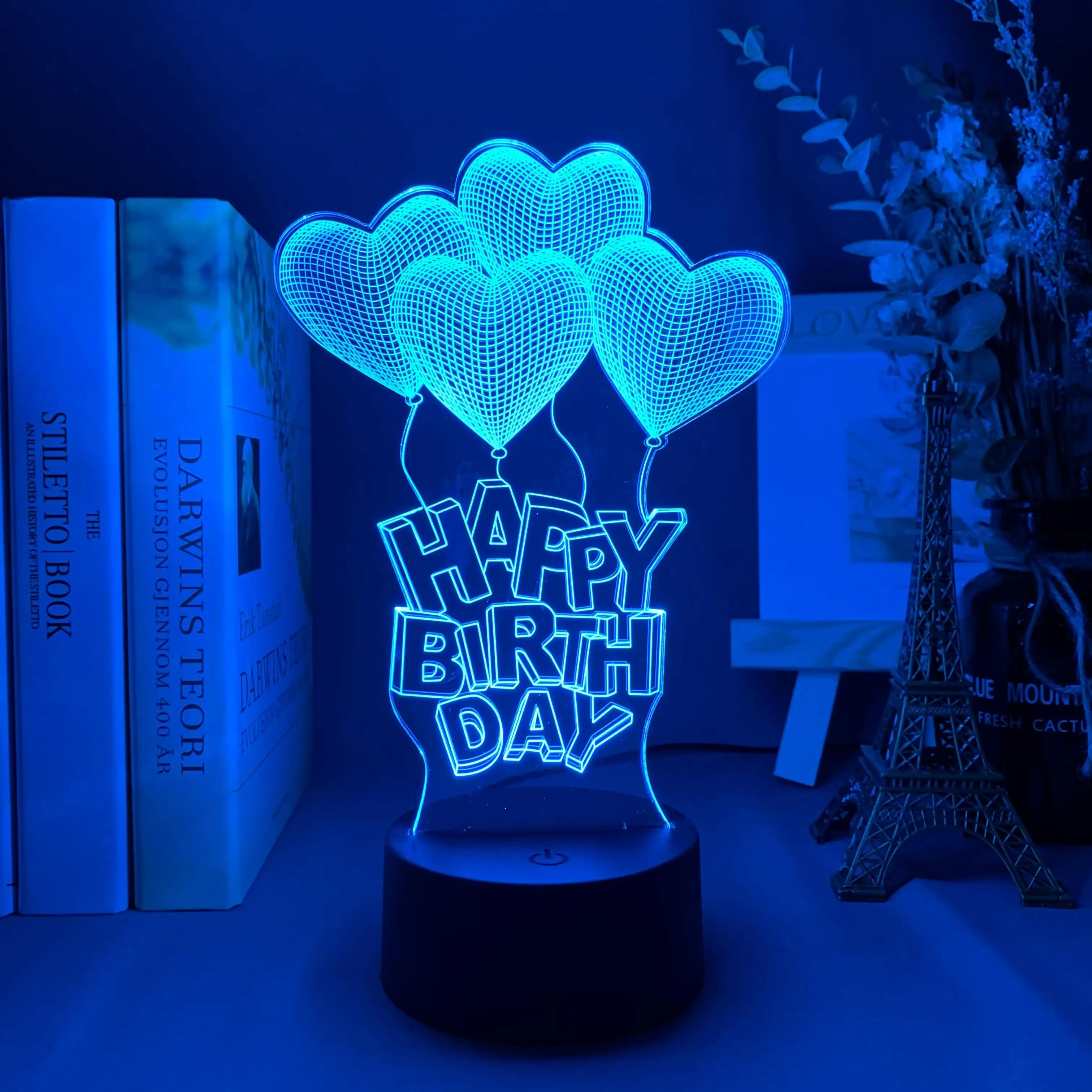 Светодиодный ночсветильник с сердечками и воздушными шарами, меняющий цвет, ночсветильник для девочек, украшение для детской комнаты, уникальный подарок на день рождения, настольная лампа 3D для спальни