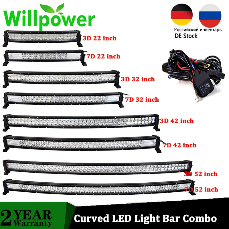 Willpower 22 32 42 50 52 ''дюймовый изогнутый светодиодный светильник, комбинированный светодиодный рабочий светильник для внедорожного вождения, противотуманная фара для грузовика 4x4 ATV UTV 12V 24V