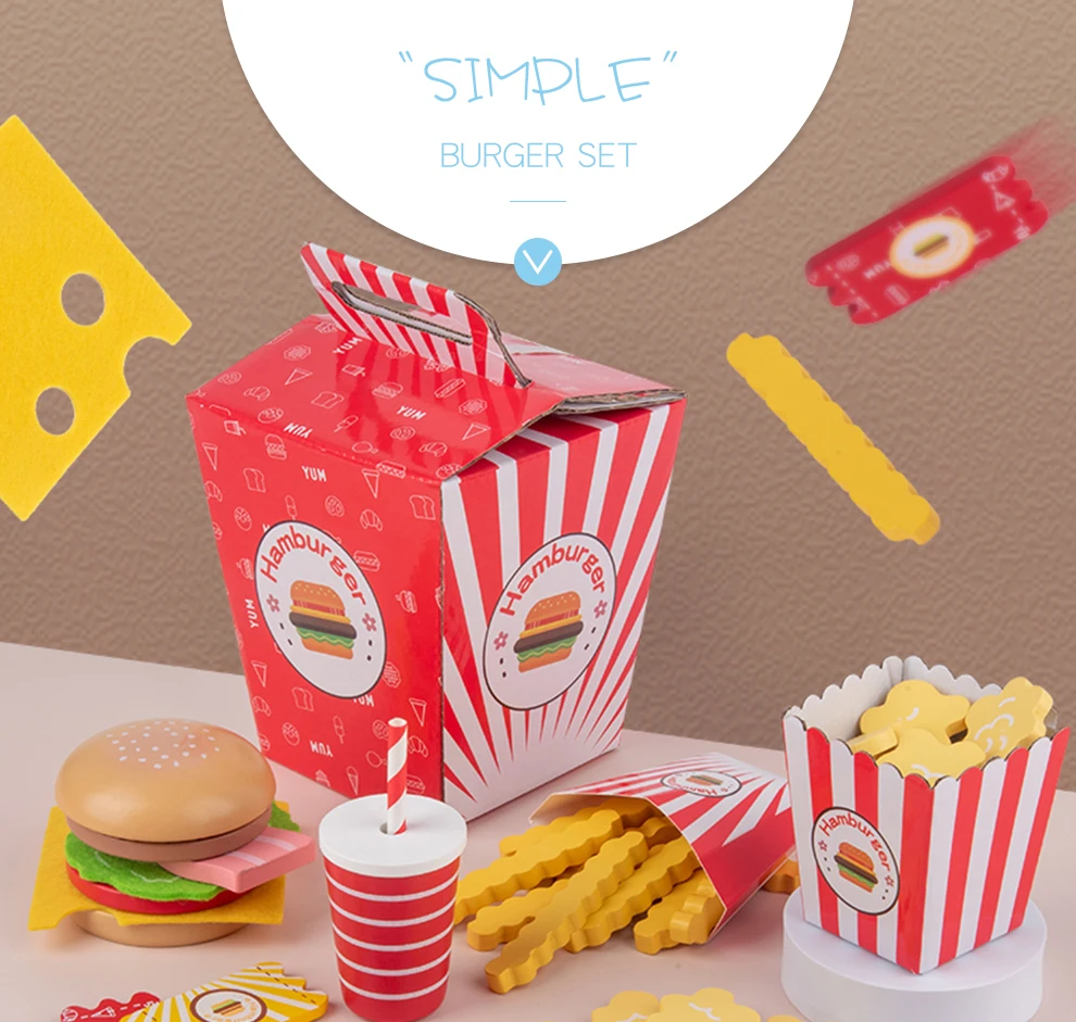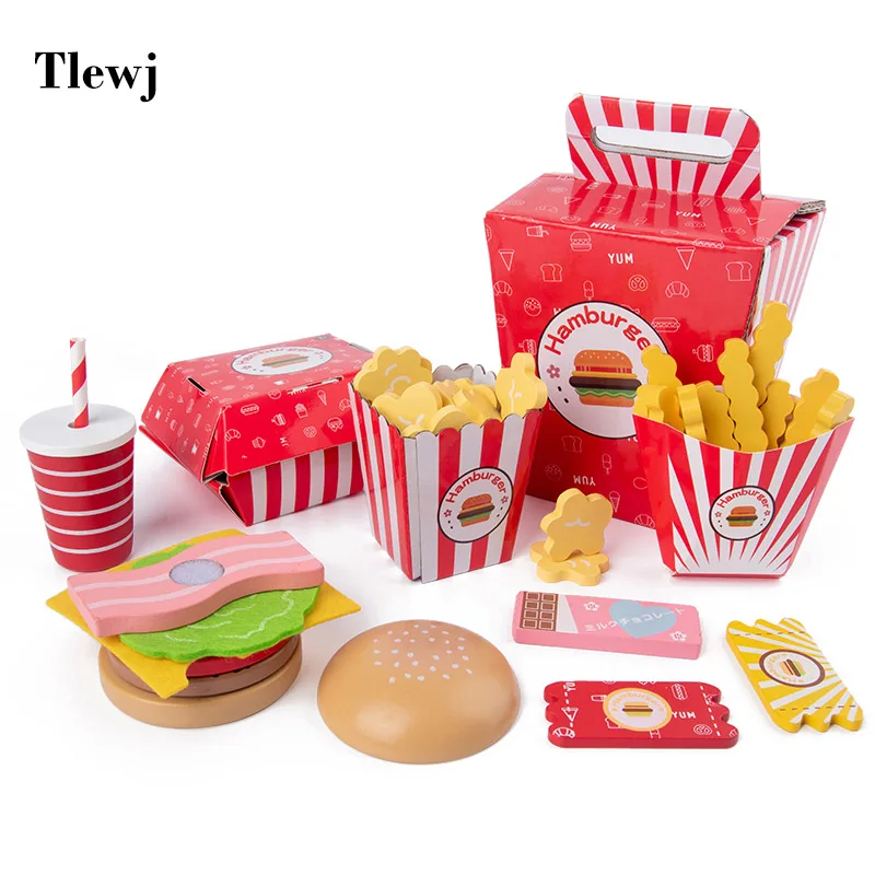 Деревянная детская игрушка имитация гамбургер картофель фри набор соковыжималка кофемашина игровой домик имитация реальной жизни кухонная утварь игровые Игрушки