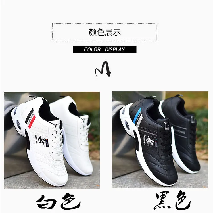 Кроссовки мужские из ПУ кожи, повседневные теннисные туфли на танкетке, модные спортивные белые, осень 2021