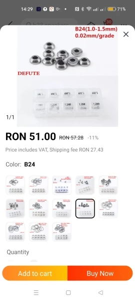 Модель изделия (мм):B26 (диаметром 19,5/диаметром 23) Толщина (мм): 1,340-1,760 (диаметром 0,01 мм/класс)