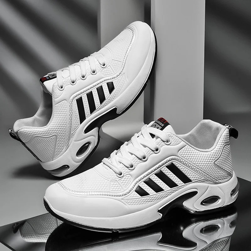 Кроссовки мужские кожаные, удобная спортивная обувь, полосатые Кеды на танкетке, повседневные школьные кроссовки, 2021