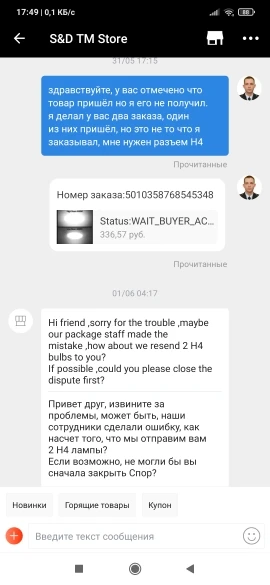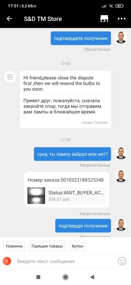 продавец моральный пидор. ну начнём! мало того что этот гандон слал свои ебучие лампы долго, так в место двух он прислал одну и то с другим разъемом и светом. я просто заебался в споре, после того как я отправил обратно его хуету он её получил, но отметку об этом в споре не поставил в сообщениях просил отменить спор на все мои вопросы. короче не покупайте у этого мудака
