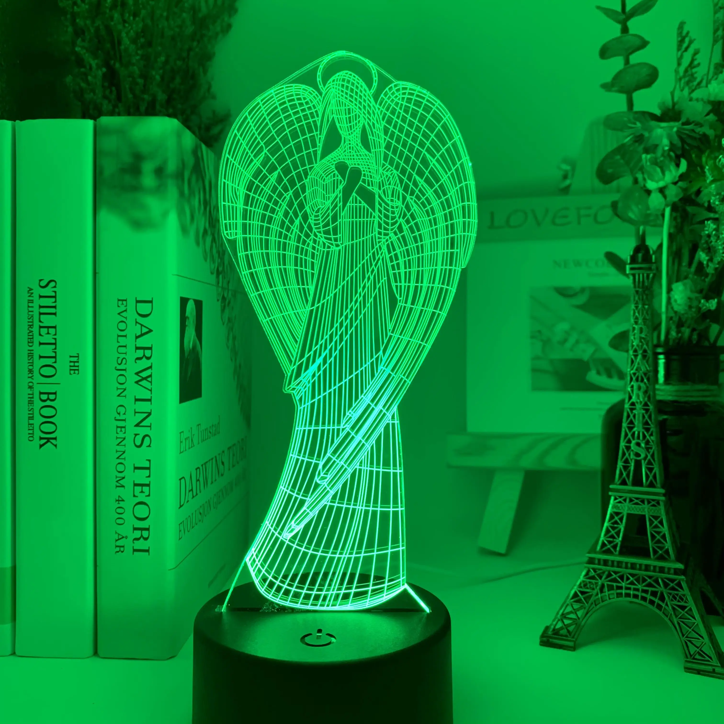 Акриловый светодиодный ночник с 3D иллюзией, модель с ангелом, ночной Светильник ильник для детской комнаты, светильник освещение, настольная лампа с Usb-аккумулятором