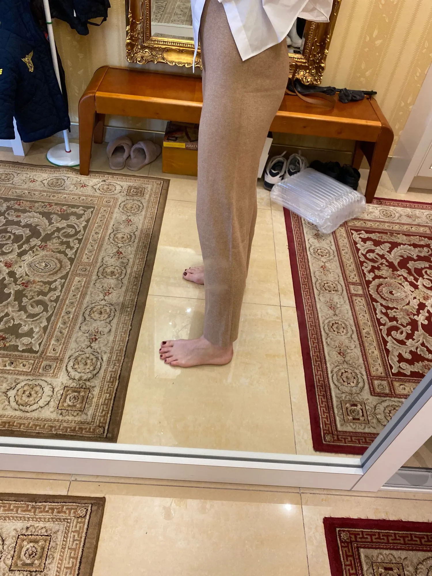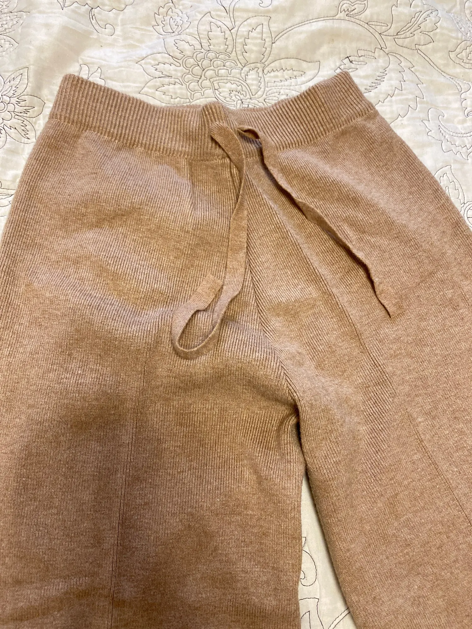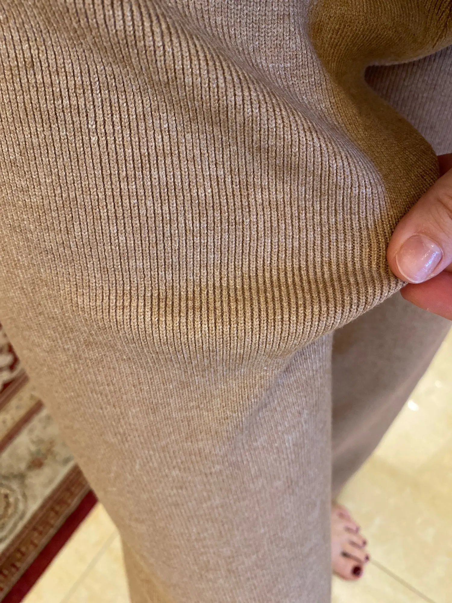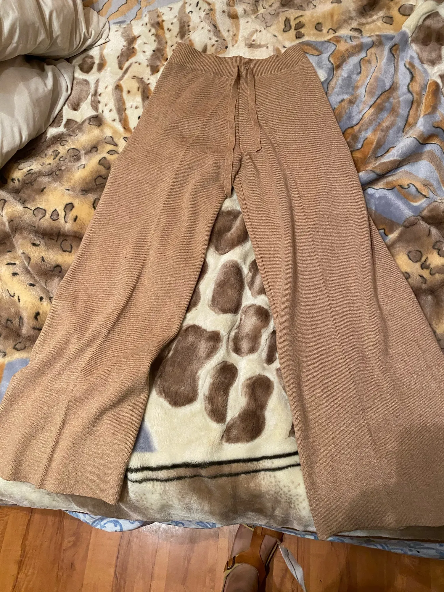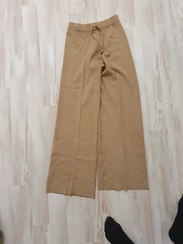 Мне штаны очень понравились, я не разделяю негатив, потому что и цвет не такой жёлтый как у некоторых на фото, и длина на 168см нормальная, и по ширине сели на бедра 112 см, талия 88 см. Ничего не давит, очень комфортные, тяжеленький хорошего качества трикотаж, очень хорошо тянется. Ну как сидит, тут уж у каждого должны быть претензии к своей фигуре, а не к изделию. Даже на 50 размер абсолютно комфортные, с длинным свитером вообще шик. Что касается цвета, он бежево песочный, не желтит, очень приятный, и по форме не куцые, а широкие от бедра, а не от колена, чего я боялась. Короче, я очень довольна покупкой, хорошо что не забоялась купить. Позже я заказала и овсяного цвета, (oatmeal), и очень надеюсь они тоже не разочаруют. Я очень люблю вязанные изделия из такого трикотажа, он плотненький и струящийся. Очень рекомендую. Спасибо огромное продавцу за отличный товар.