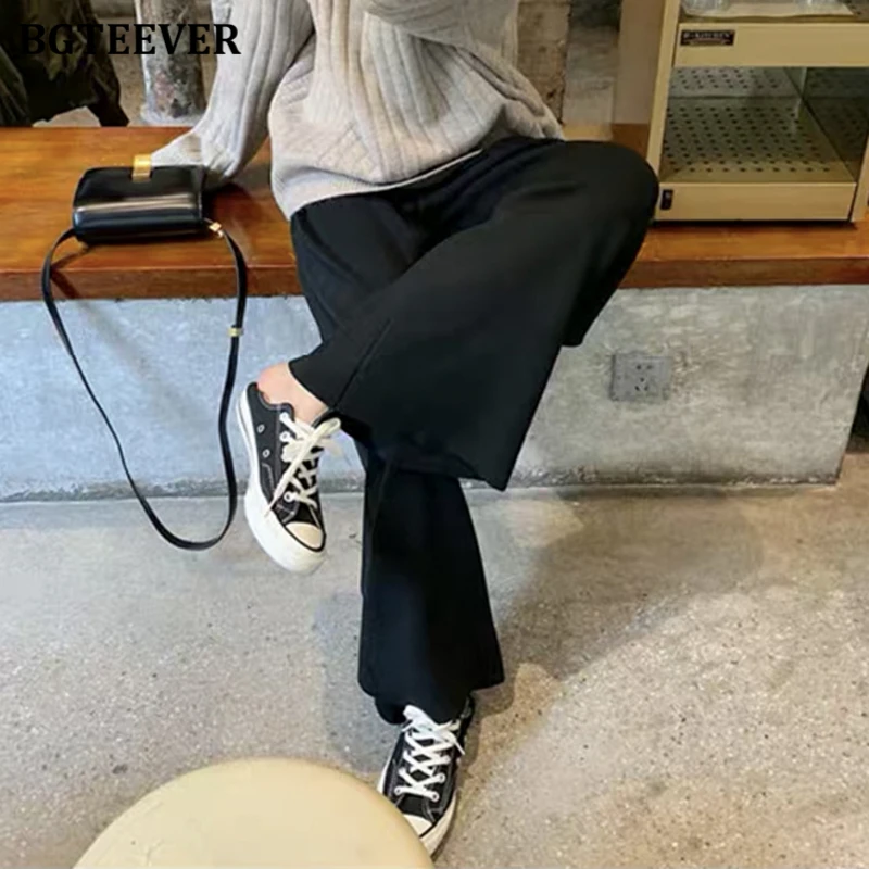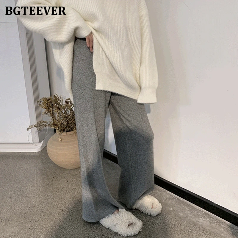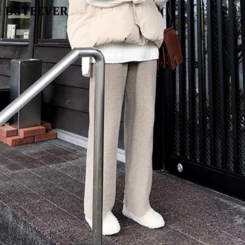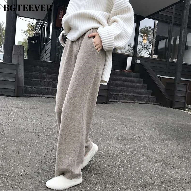 Женские трикотажные брюки на шнуровке BGTEEVER, Теплые повседневные свободные свитеры с эластичным поясом и широкими штанинами, Осень-зима 2020