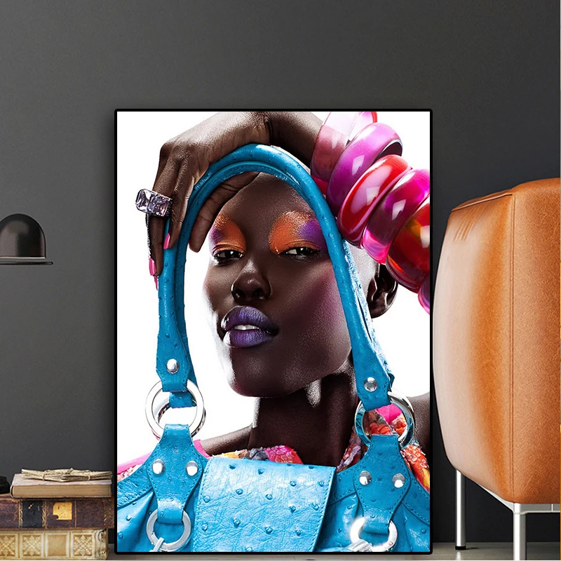 Модная афро-американская черная женщина картина маслом на холсте плакаты и принты Скандинавское Искусство Настенная картина для гостиной