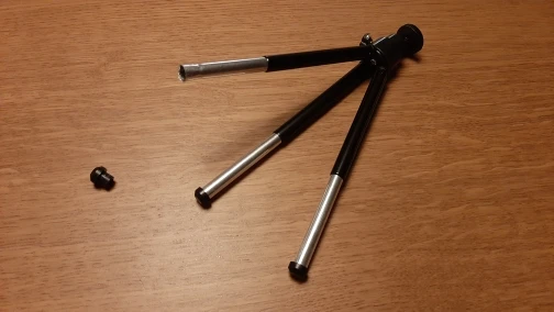 Пришло быстро, за 2 недели. Алиэкспресс ускорил доставку. Сам штатив маленький, я ожидал, что он будет чуть побольше. Но мне пойдёт, брал для хронографа. Ножки вытягиваются, но при этом не фиксируются. Верхнюю платформу с болтом можно повернуть на 90 градусов и зафиксировать