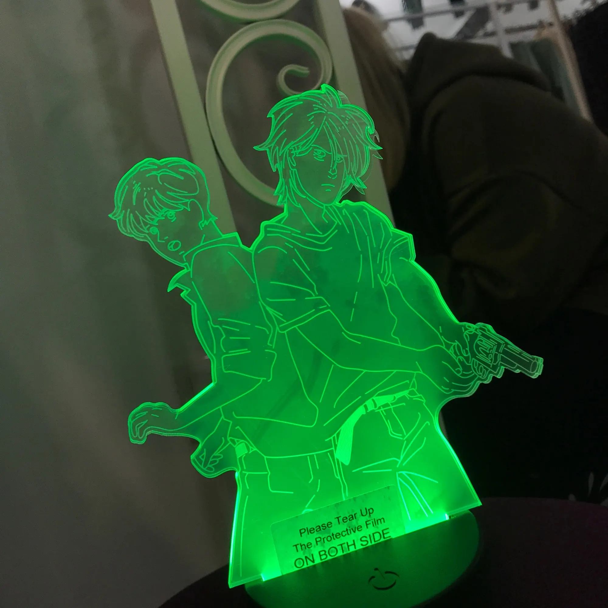 Светильник моей мечты, заказывала на 16 цветов т.к. можно уменьшить свет яркость. На всю ночь оставлять боюсь т.к. сама конструкция нагревается. ЗАЩИТНАЯ ПЛЕНКА ЕСТЬ С ОБЕИХ СТОРОН.с одной стороны я оторвала без проблем,а вот с другой были проблемы, пришлось поддевать чем то острым
