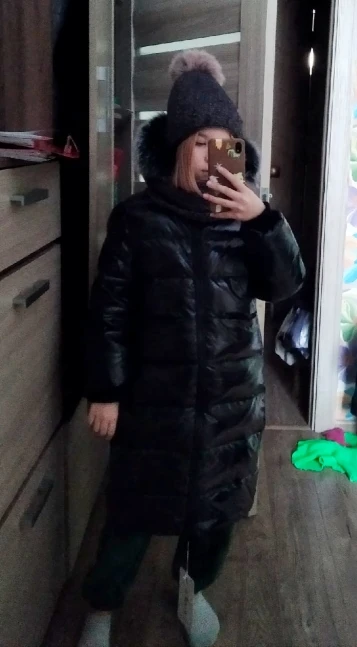 Посылка отслеживалась, куртка не скажу что прям супер, мех облезлый, его не хватает пристегнуть от начала до конца (коротковат), длинна куртки, не то что я ожидала, она ниже колена, но никак не в пол.