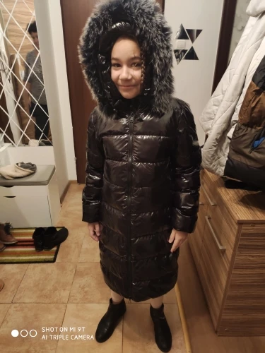 Очень красивый и качественный пуховик. Запаха нет, заводской пошив. Дочь довольна, очень понравился. Набит хорошо. Очень легкий. Мех хороший, натуральный. На рост 132 , 9 лет подошел идеально, чуть на вырост . Большое спасибо .