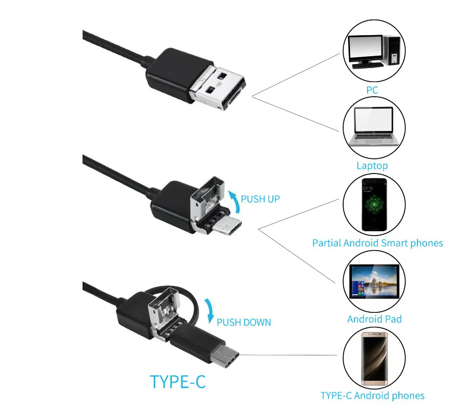 1 м2 м3,5 м5 м10 м портативный водонепроницаемый 360 камера 8-миллиметровый эндоскоп с поддержкой для ПК компьютер Type-C USB мини-экшн-камеры для телефона Xiaomi