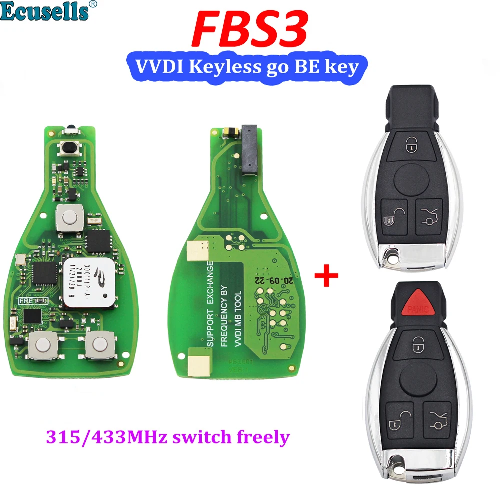 Оригинальный ключ без ключа Go FBS3 VVDI BE, 34 кнопки, 315 МГц, 433 МГц, одна кнопка запуска для Benz W204, W207, W212, W164, W166, W221, CLK