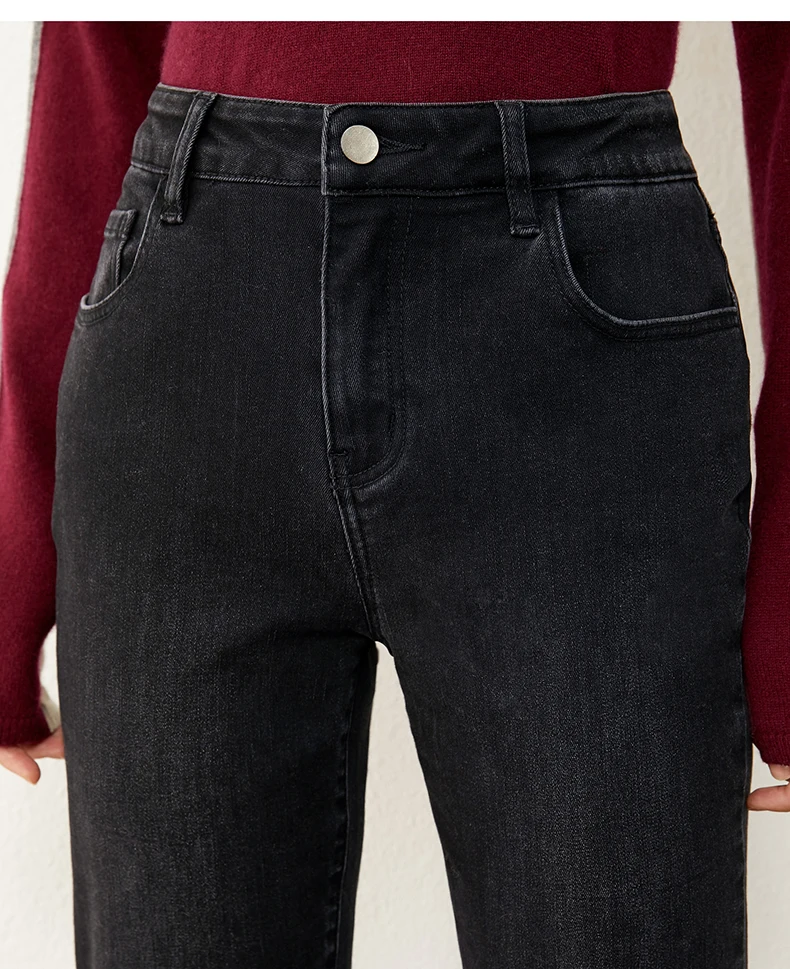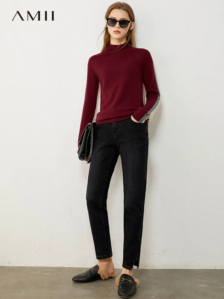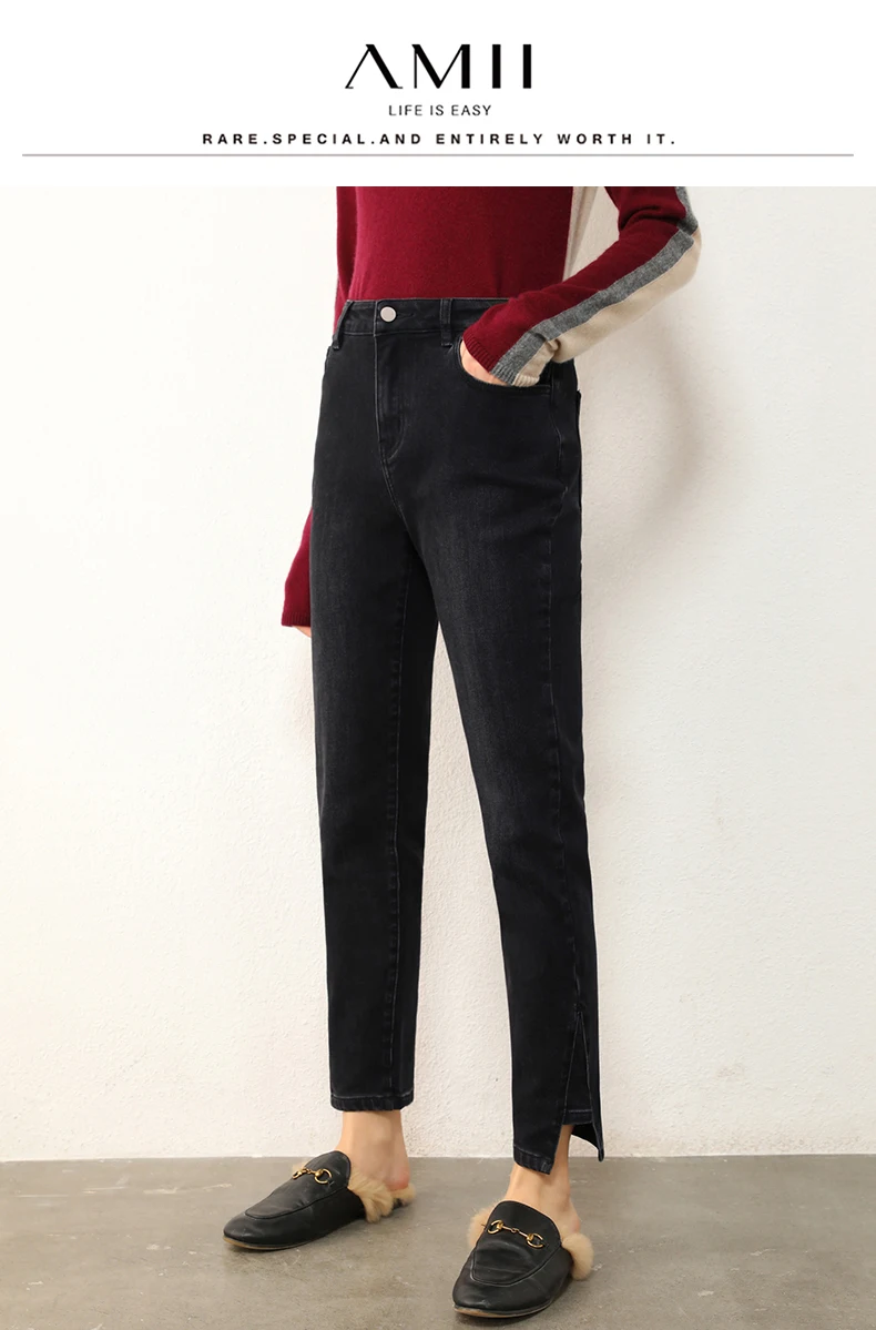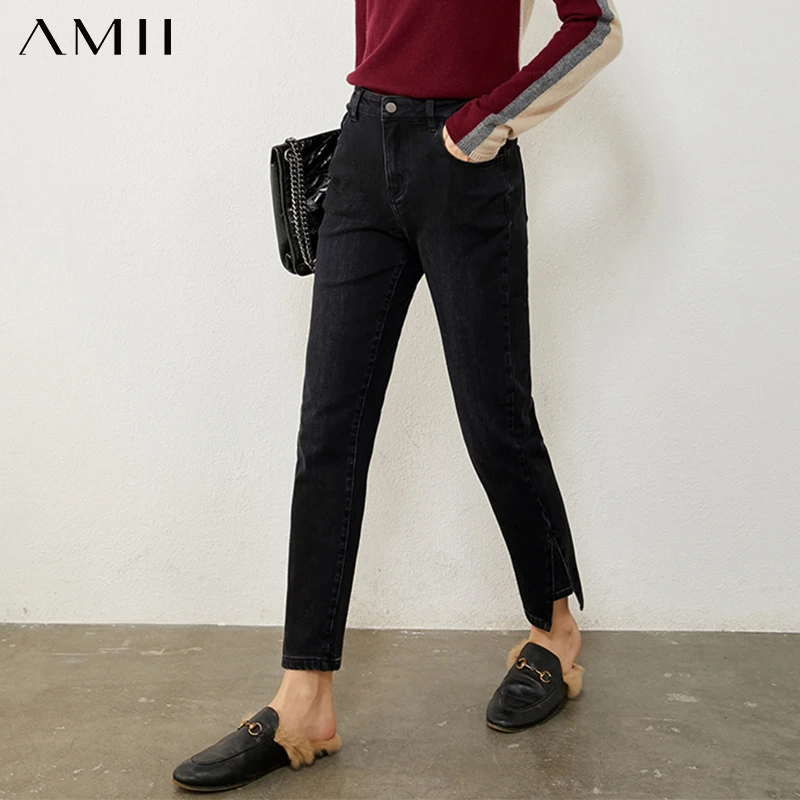 Amii минимализм сезон осень-зима; Повседневные джинсы для женщин, модные однотонные Slim Fit ботильоны-длина брюки для женщин Женский 12030437