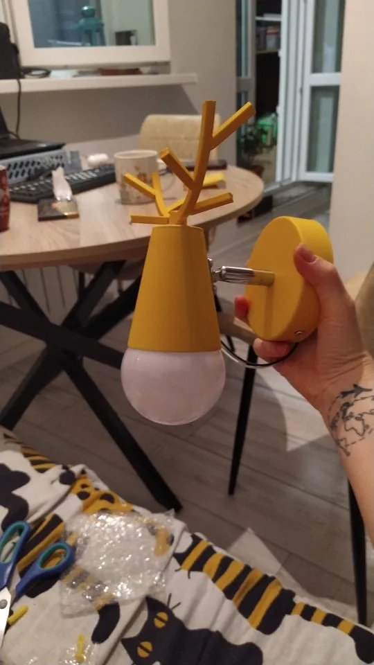 лампа пришла быстро, в течении двух недель, хотя срок был заявлен гораздо дольше. всё хорошо запаковано, каждая деталь в отдельный пакет, всё вместе в пенопластовый бокс. лампочка пластиковая, но она идеально подходит в цоколь, потому что именно этот момент мне был важен, тк в магазине видела такие же бра, только белые и чёрные, и в них лампочка торчала как отдельный элемент. здесь же это действительно смотрится как мордочка. цвет красивый ярко-желтый.